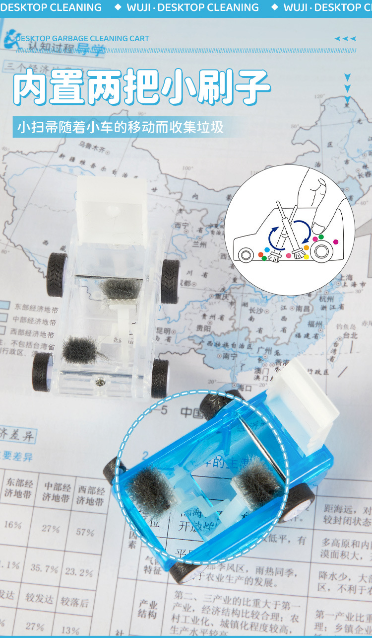 国境を越えた学生ミニデスクトップクリーニングカートプッシュスクーター鉛筆消しゴムゴミ収集車クリーナーおもちゃ