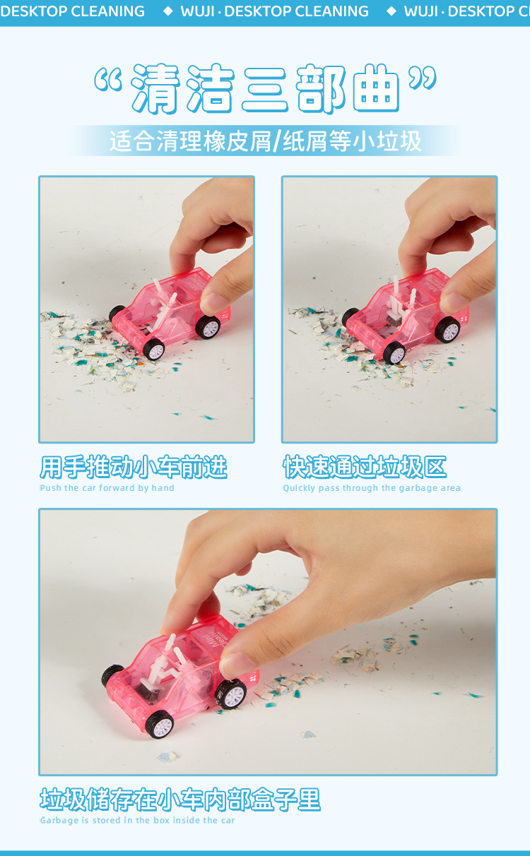 デスクトップクリーニングカー楽しいダスト除去学生文具デスクトップ鉛筆消しゴムミニカーマニュアルダストリムーバー