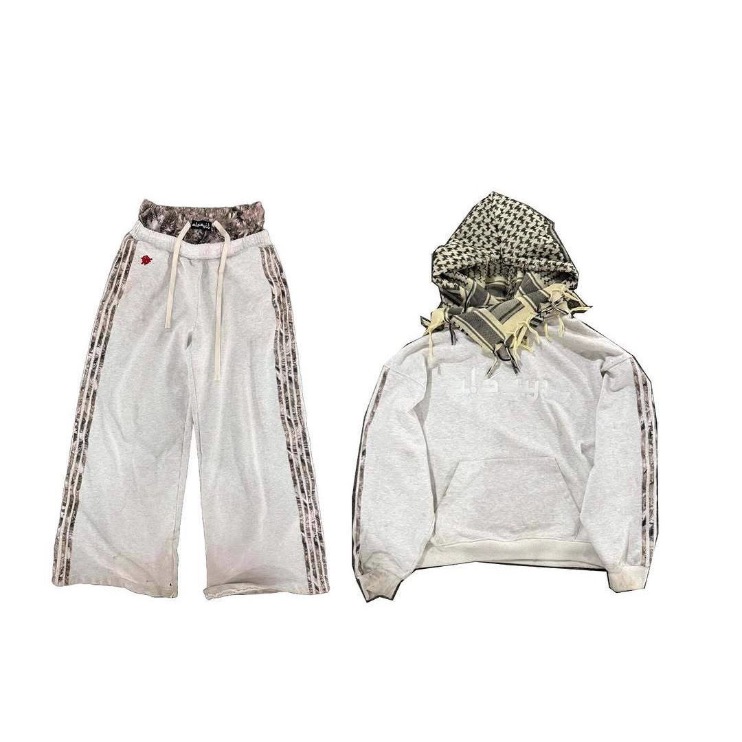 2025年秋冬季节高街潮流美式复古套头连帽卫衣直筒抽绳长裤套装