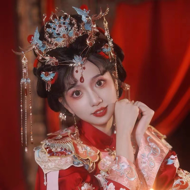 古風の結婚の鳳冠の時代劇の漢服の頭飾りの大きい女性の主の結婚式の髪飾りの復古のフリンジステップの女性の超仙の装飾