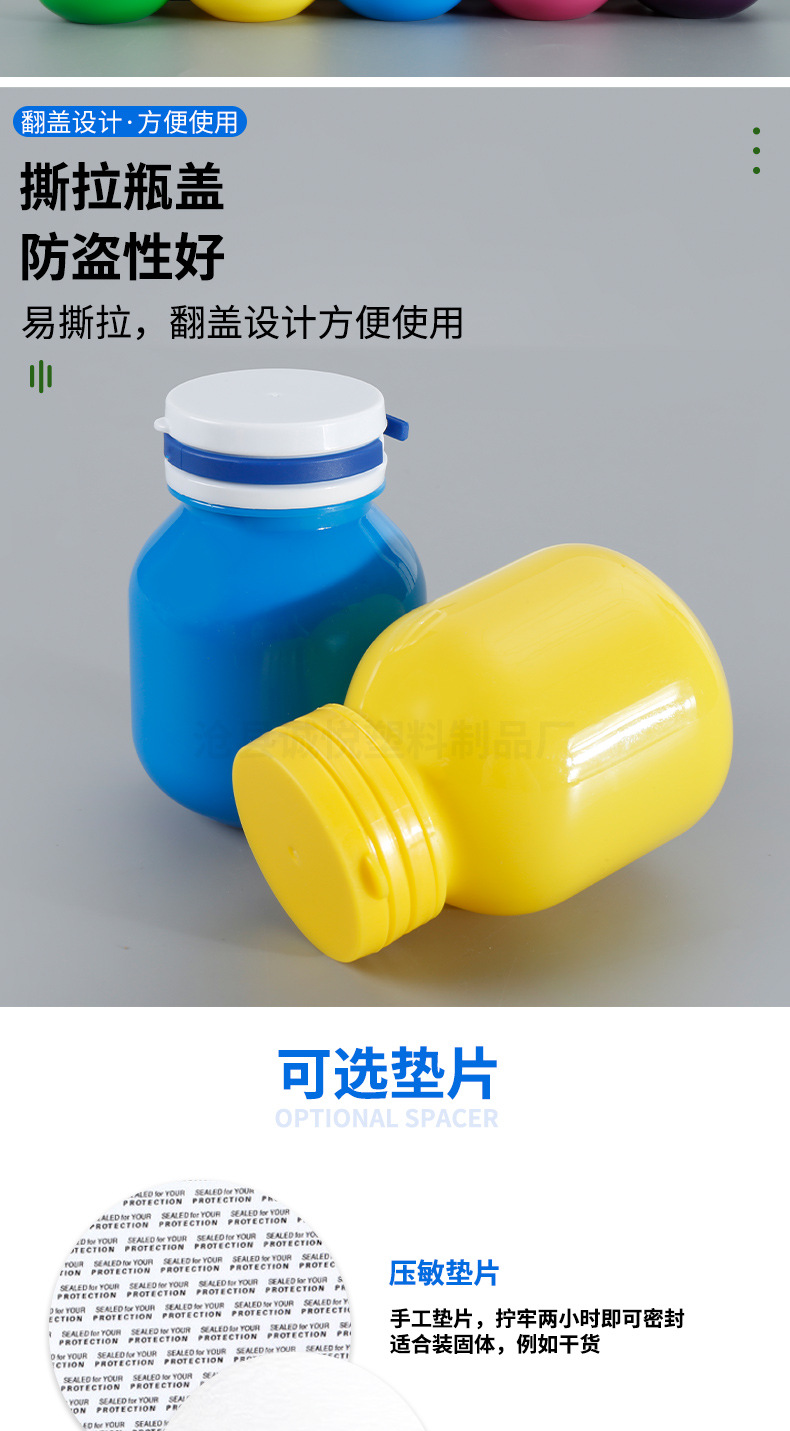 スポットホワイトピールオフキャップボトル 120ml プラスチック包装ボトル 固形分注ボトル 150ml タブレットボトル