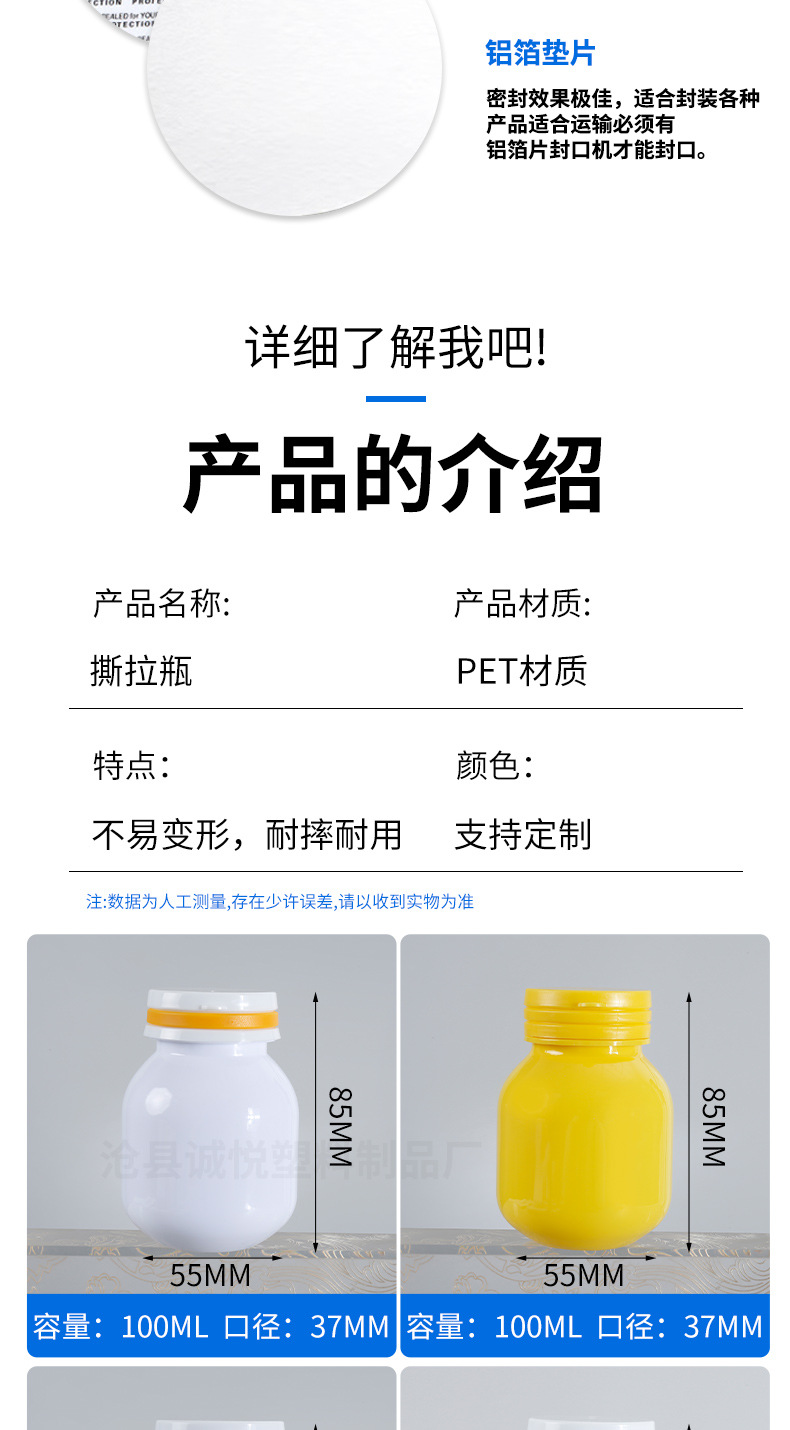広口錠剤瓶100ml petカプセル瓶はVC魚油100ccを厚くして蓋を裂く健康食品ペットボトル