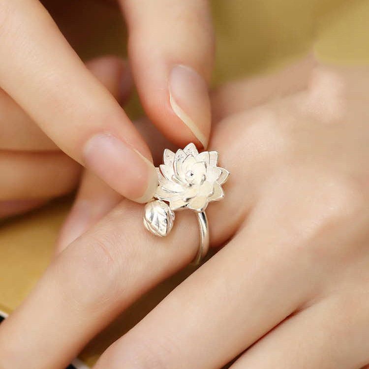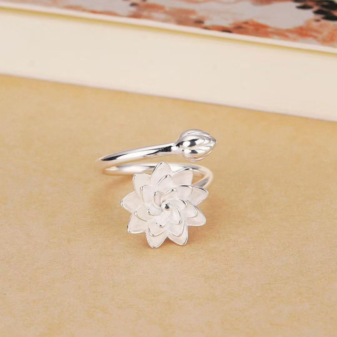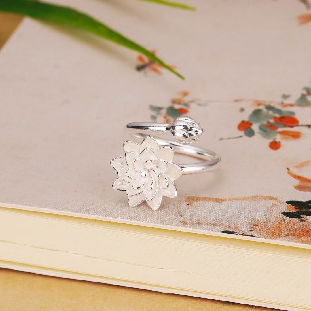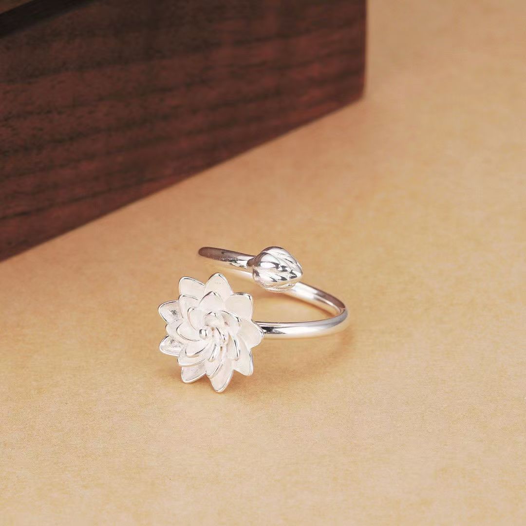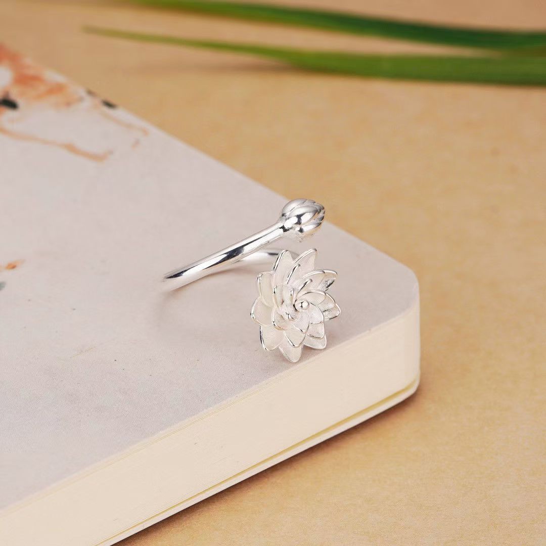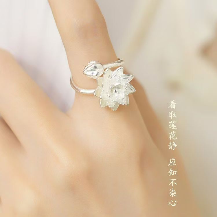 新しい中国風の気質の白い蓮の指輪のアイデアの開口部は手の装飾の小さい清新なハスの花の指の輪の女性を調節することができます。