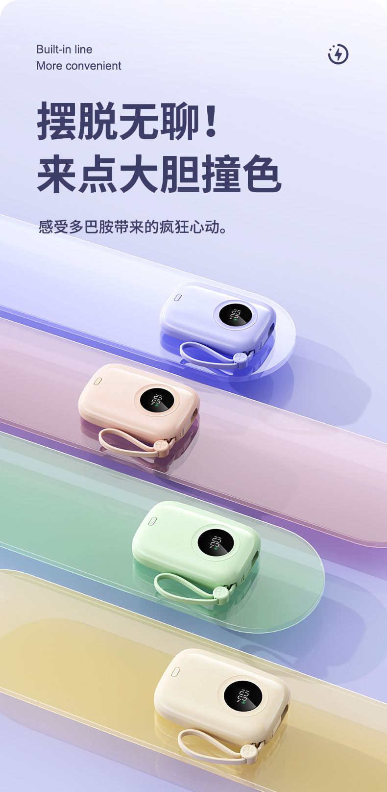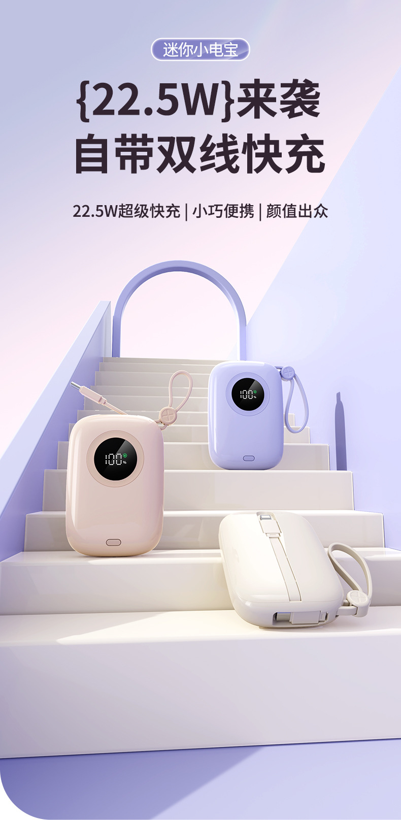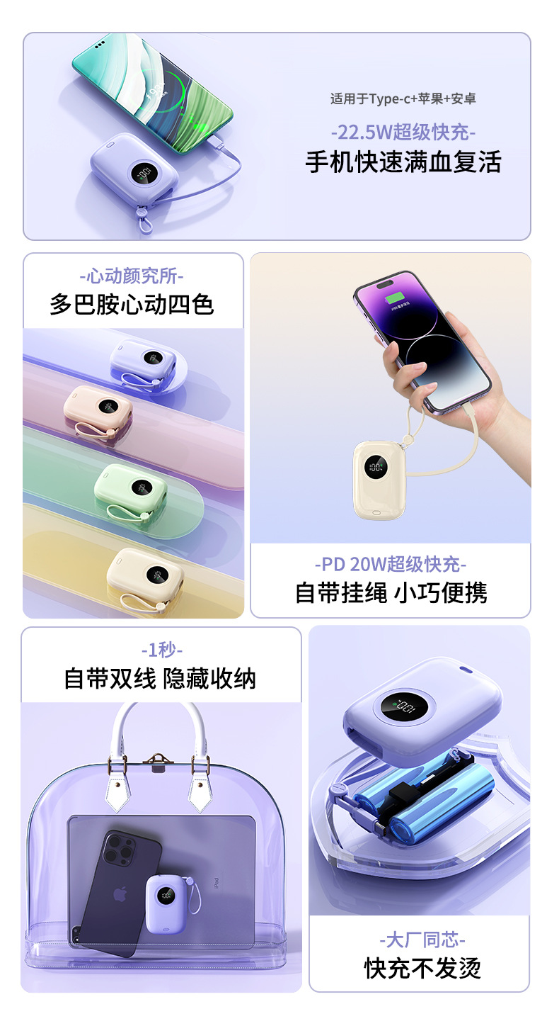 国境を越えた卸売りの小彩卵は、ケーブル付き充電宝から小型で携帯している20000ミリアンペアの移動電源から急速に充電されている