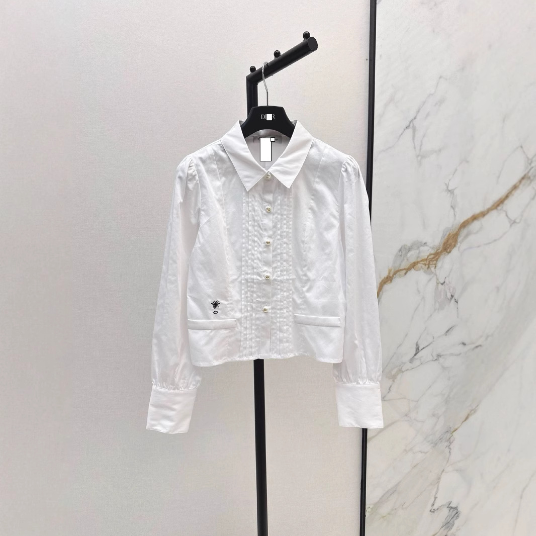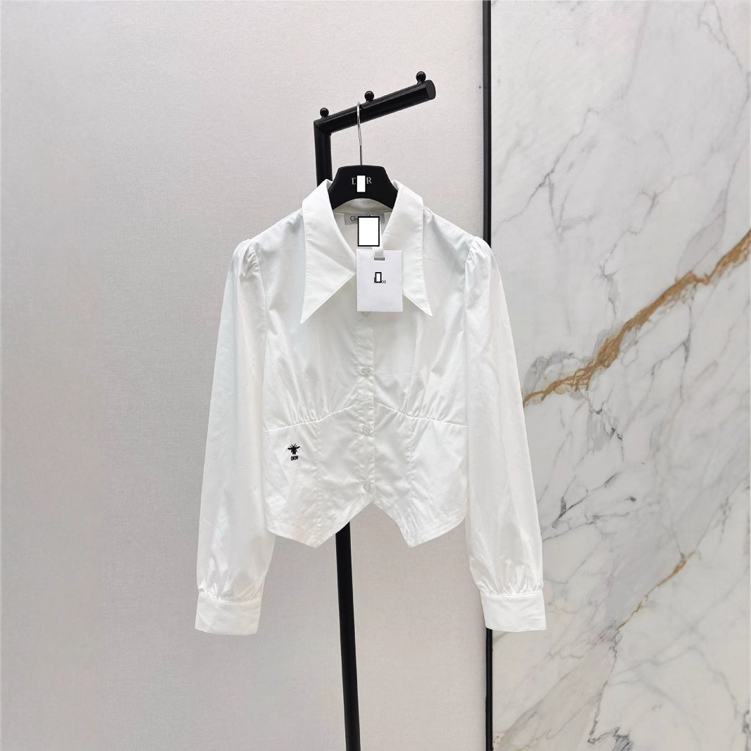 深圳南油2025春夏精致蜜蜂刺绣装饰立体收腰小尖领设计短款衬衫