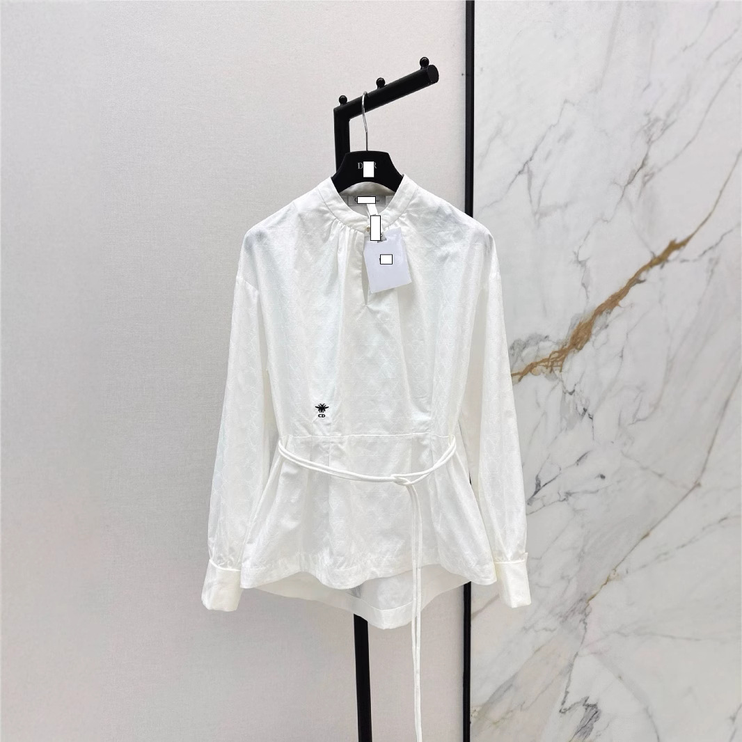 深圳南油2025春夏优雅气质CD气质提花菱格纹纯棉面料收腰衬衫