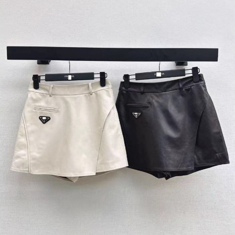 深圳南油25秋冬高端女装飒爽有型更百搭三角标装饰小羊皮皮裤裙