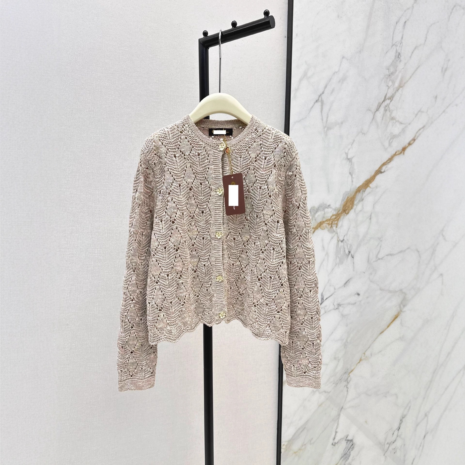 深圳南油2025春夏缕空工艺优雅气质小香风女孩针织衫