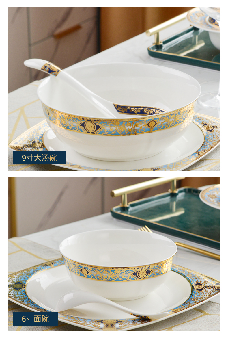 家庭用レリーフ金軽豪華骨磁器食器セット四人分32頭セット食器皿セット