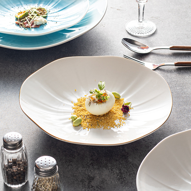皿皿皿家庭用スープ皿深皿皿皿皿洋食皿白い金辺創造陶磁器食器感