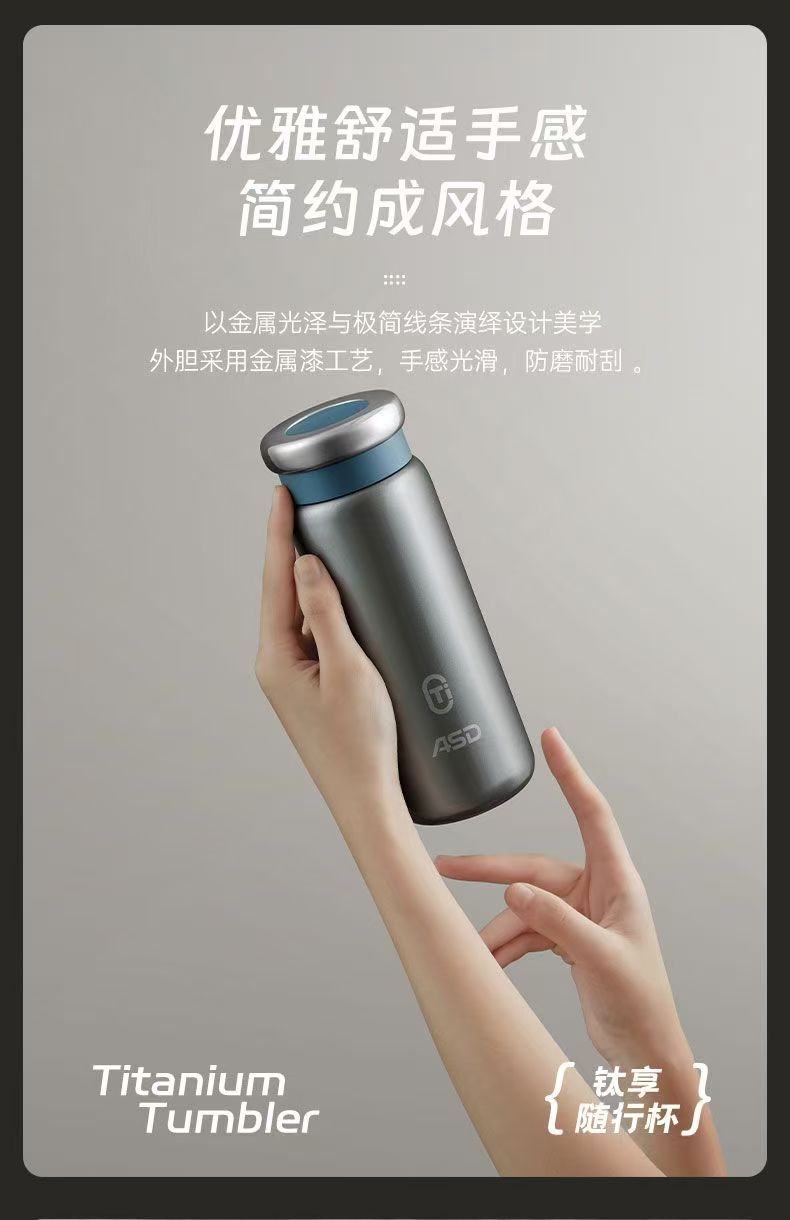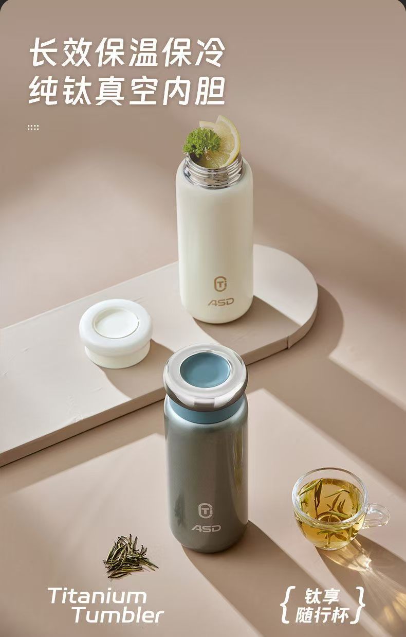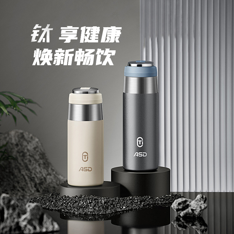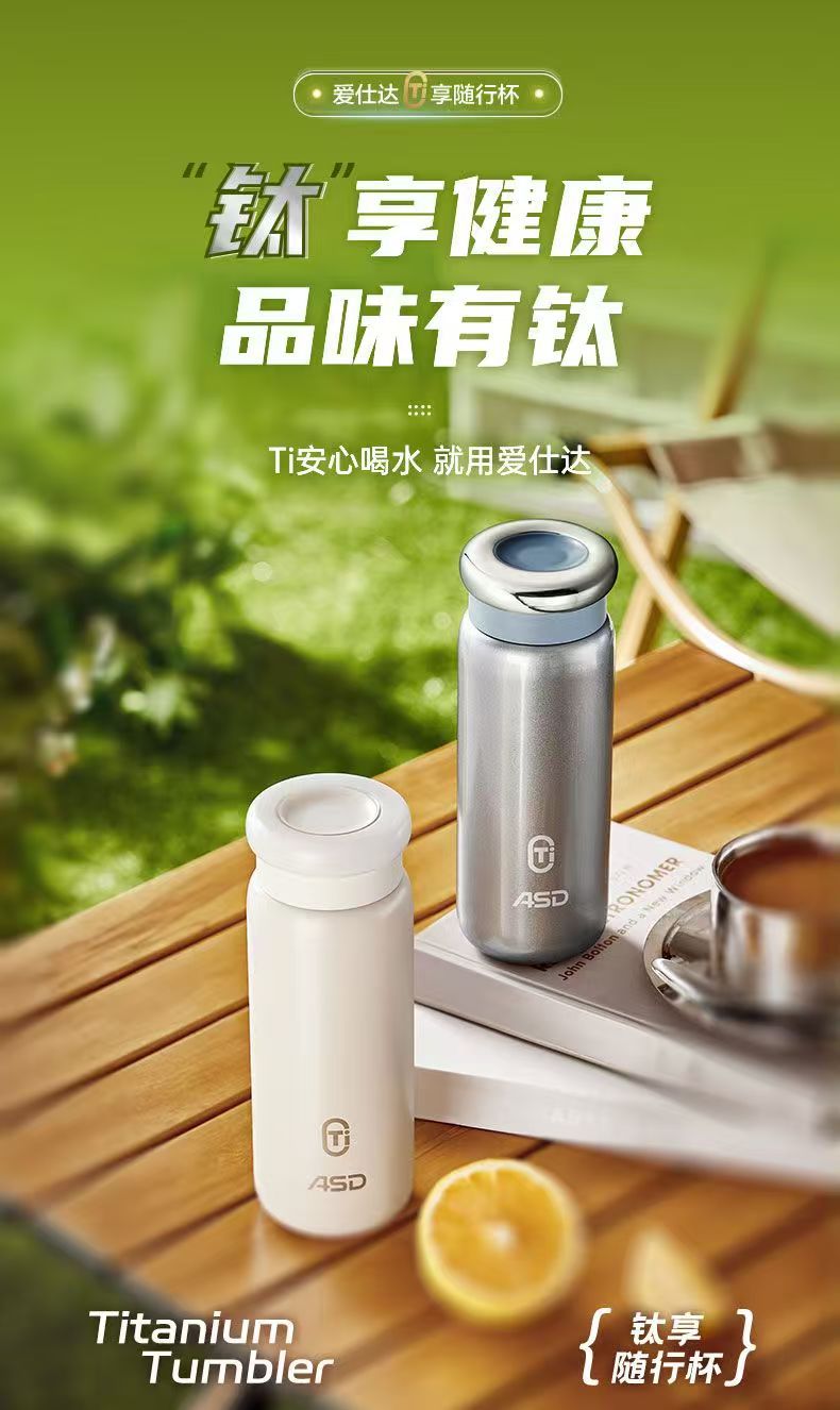 愛仕達純チタン保温カップ男性女性高級純チタン内胆シンプル養生真空保温カップ煮込みカップ