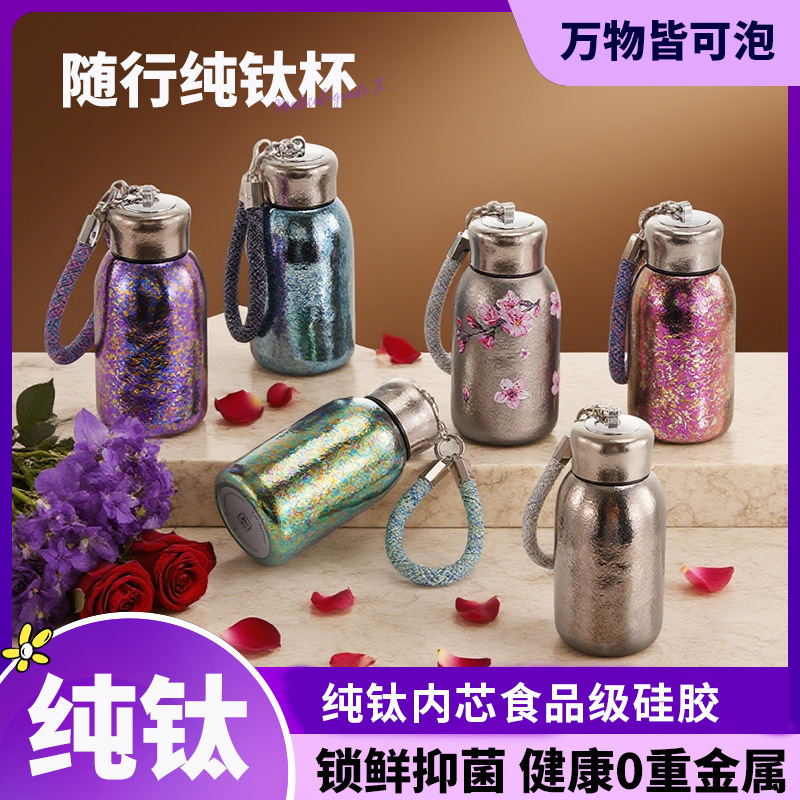 纯钛保温杯双层真空水杯高颜值茶杯口袋便携小巧钛晶焖泡咖啡水杯