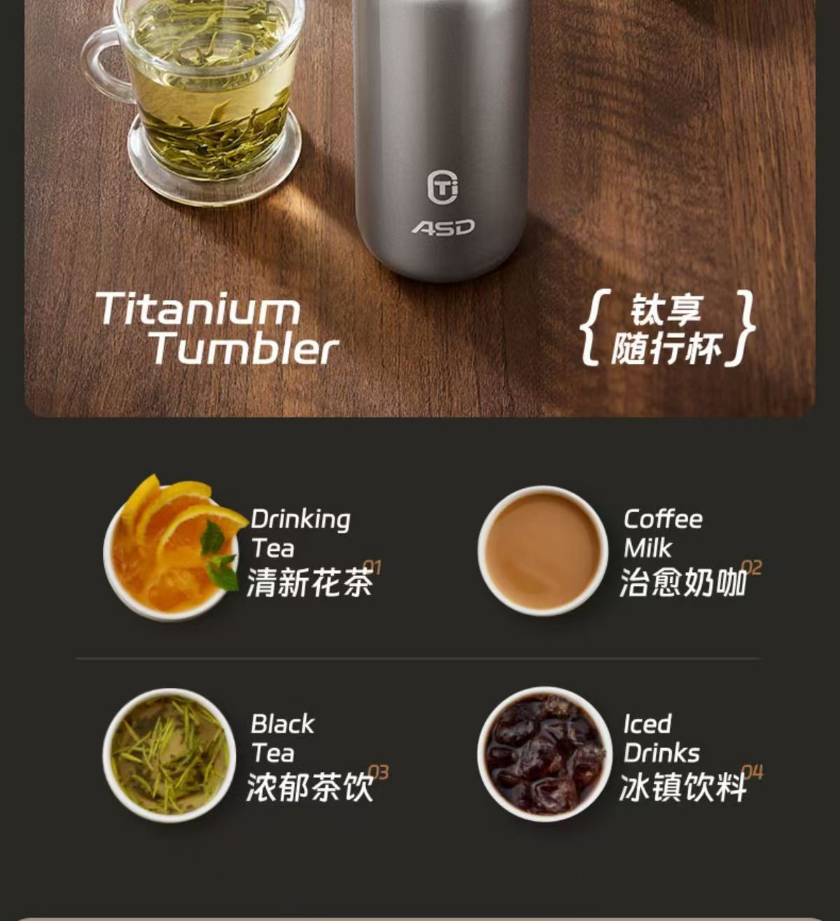 愛仕達チタン享保温カップRWS42B13Q-TG携帯Tiチタン純チタン内胆420ML真空随行カップ