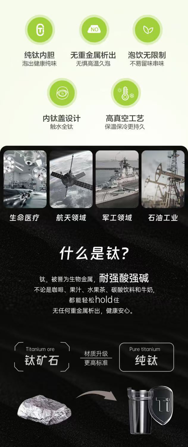 新款纯钛保温杯高颜值钛杯男女便携车载户外纯钛杯保温保冷水杯子