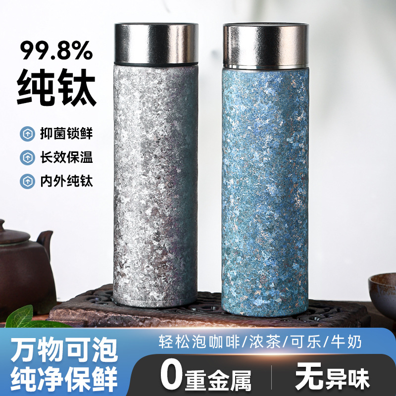 純チタン魔法瓶カップ、高見え、大容量、男女兼用ポータブル二層真空煮込みティーカップ、高級ビジネスギフト卸売