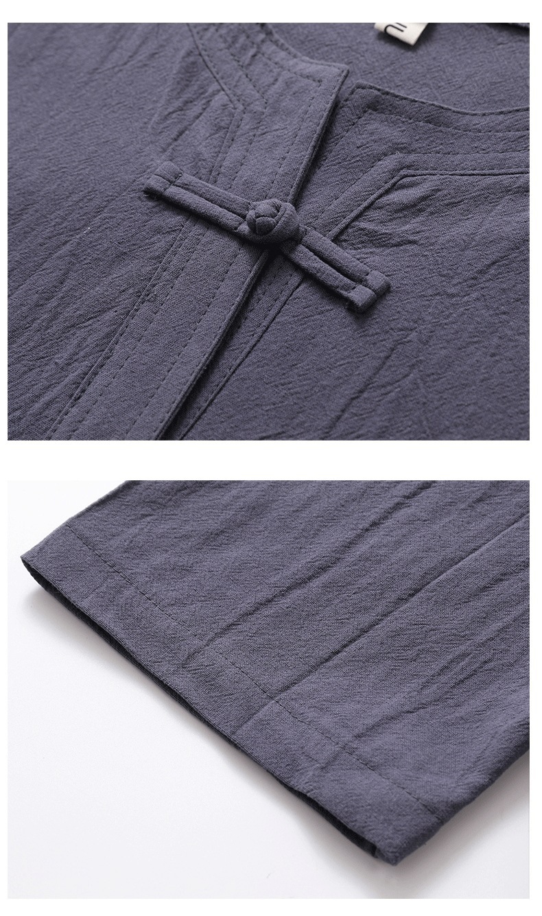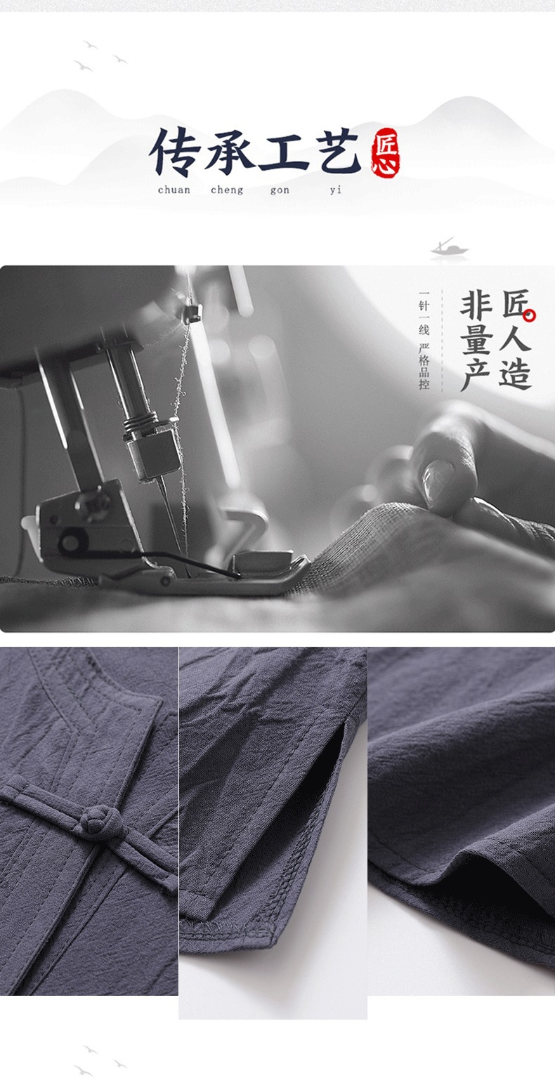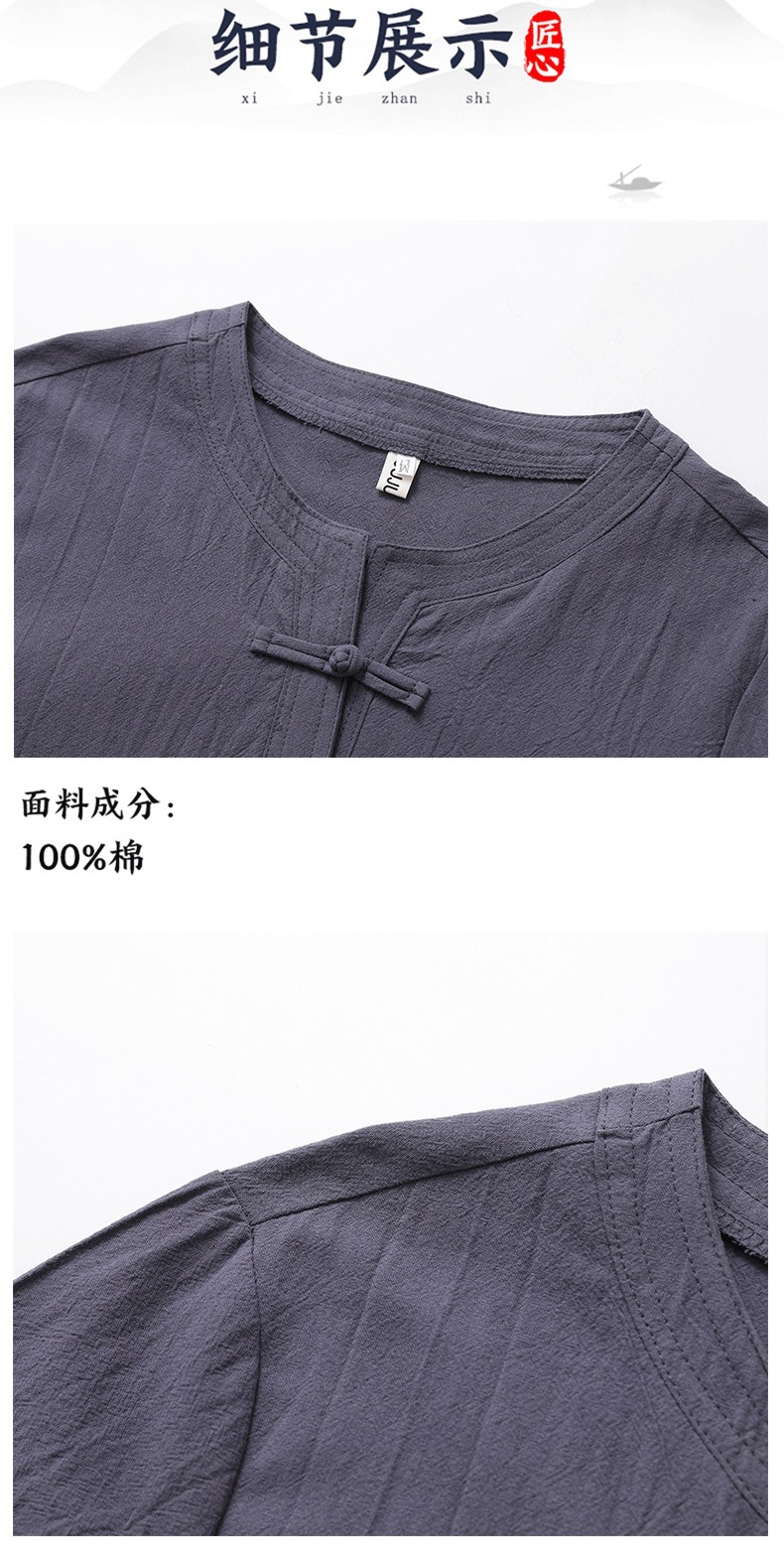 2025夏の新型中国風メンズ綿麻リネン2点セット中年半袖tシャツカジュアルセット卸売り