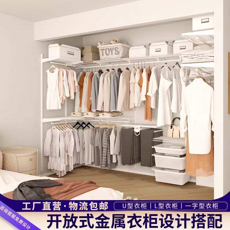 金属衣柜厂家开放式砌墙衣柜步入式衣帽间钢架简约货架衣柜