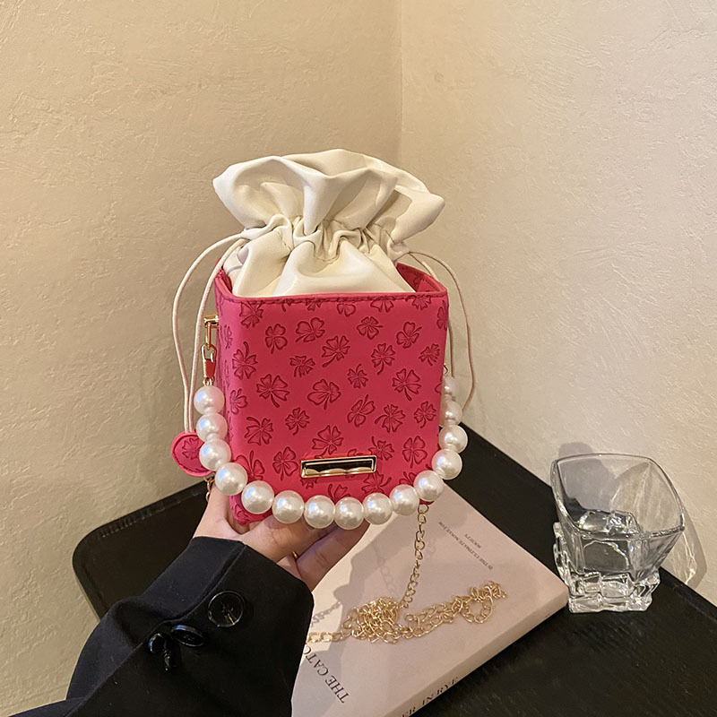 角筒小包女2025新型ネット紅洋気バケツバッグカジュアル感シンプルなショルダーバッグ真珠ハンドバッグ