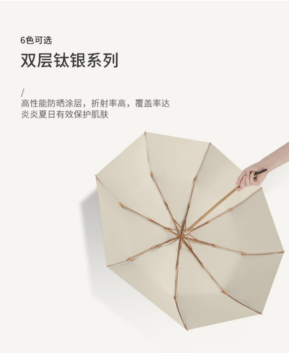 二層チタンシルバー傘柄日傘、紫外線防止折りたたみ傘、携帯用晴雨兼用二重骨傘、カスタムロゴ入り傘