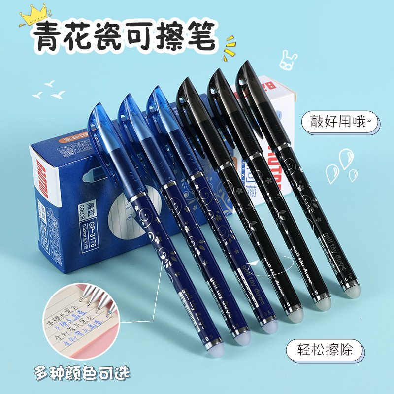 青と白の磁器消去可能なペン高価値ペン摩擦と拭きやすい 0.5 ミリメートル弾丸消去可能なゲルペン箱入り学生オフィス