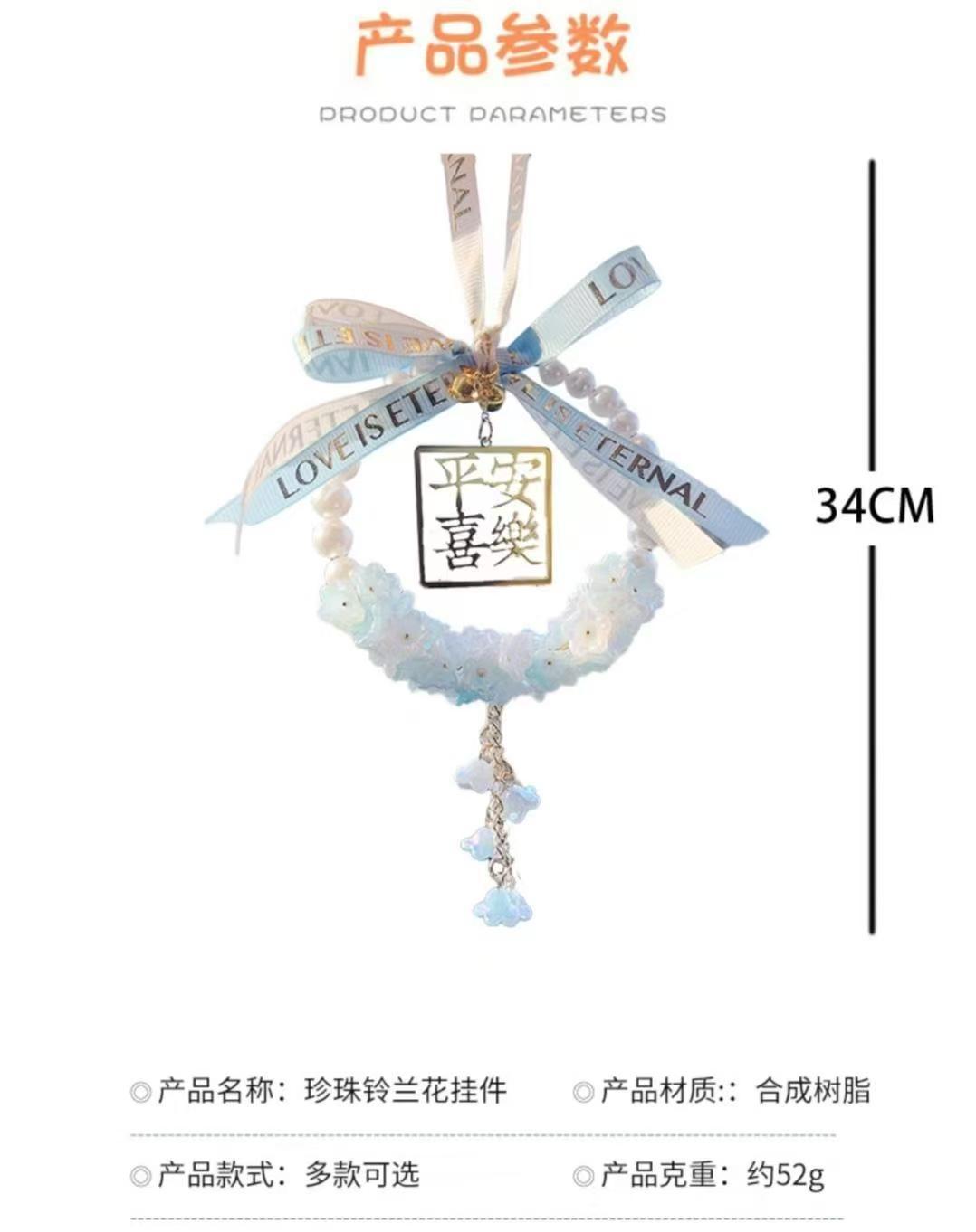 汽车挂件高级感铃兰花挂饰车载后视镜平安福吊坠电动车内装饰挂件