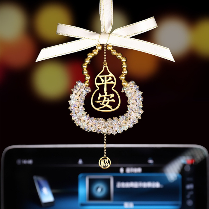 平安喜楽車ストラップ自動車2023新型手作りネット赤水晶車内ペンダントミラー