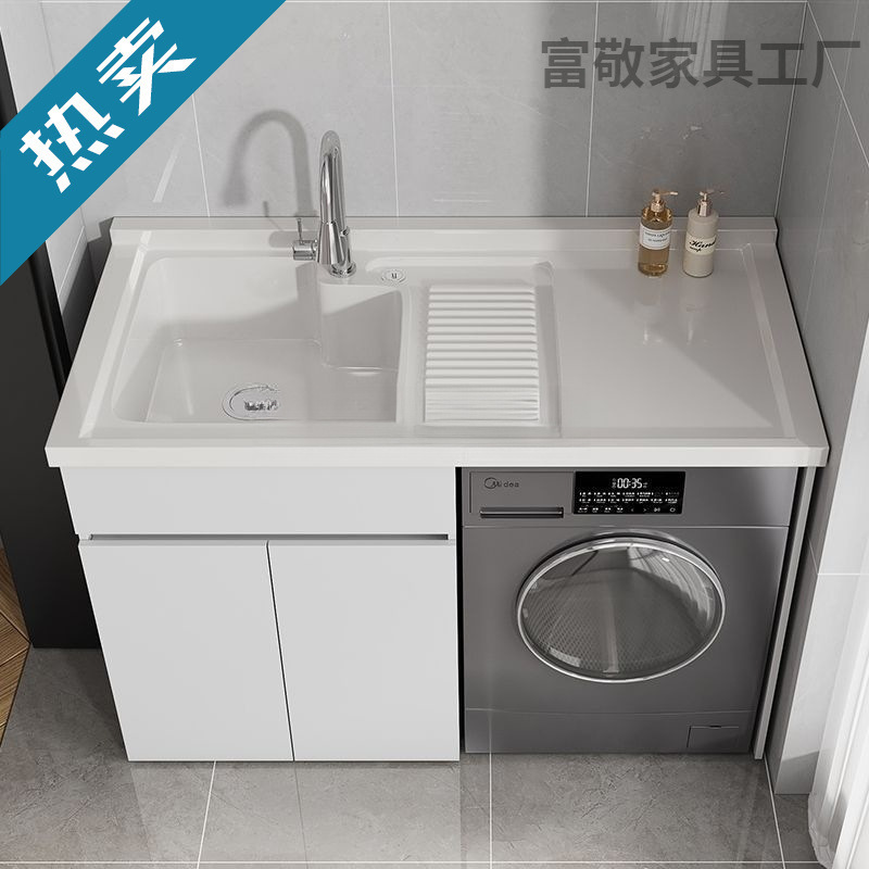 蜂窝铝阳台洗衣柜伴侣组合滚筒洗衣机柜一体洗衣池台带搓板供应链