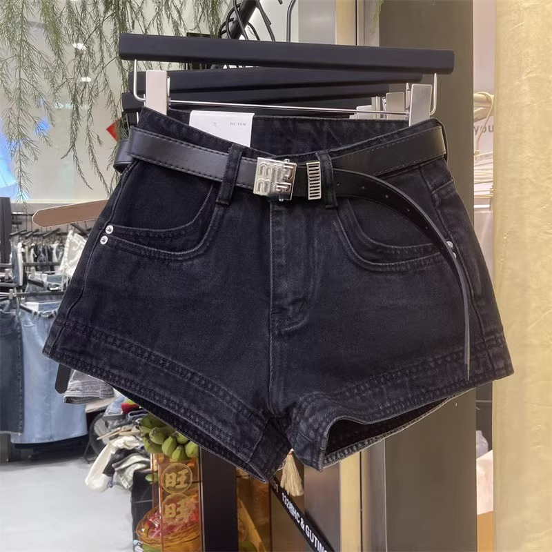 黒デニムショートパンツレディース春夏ギャル不规则ハイウエストストレッチバッグヒップホットパンツ小柄なa字超ショートパンツ