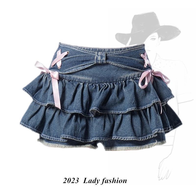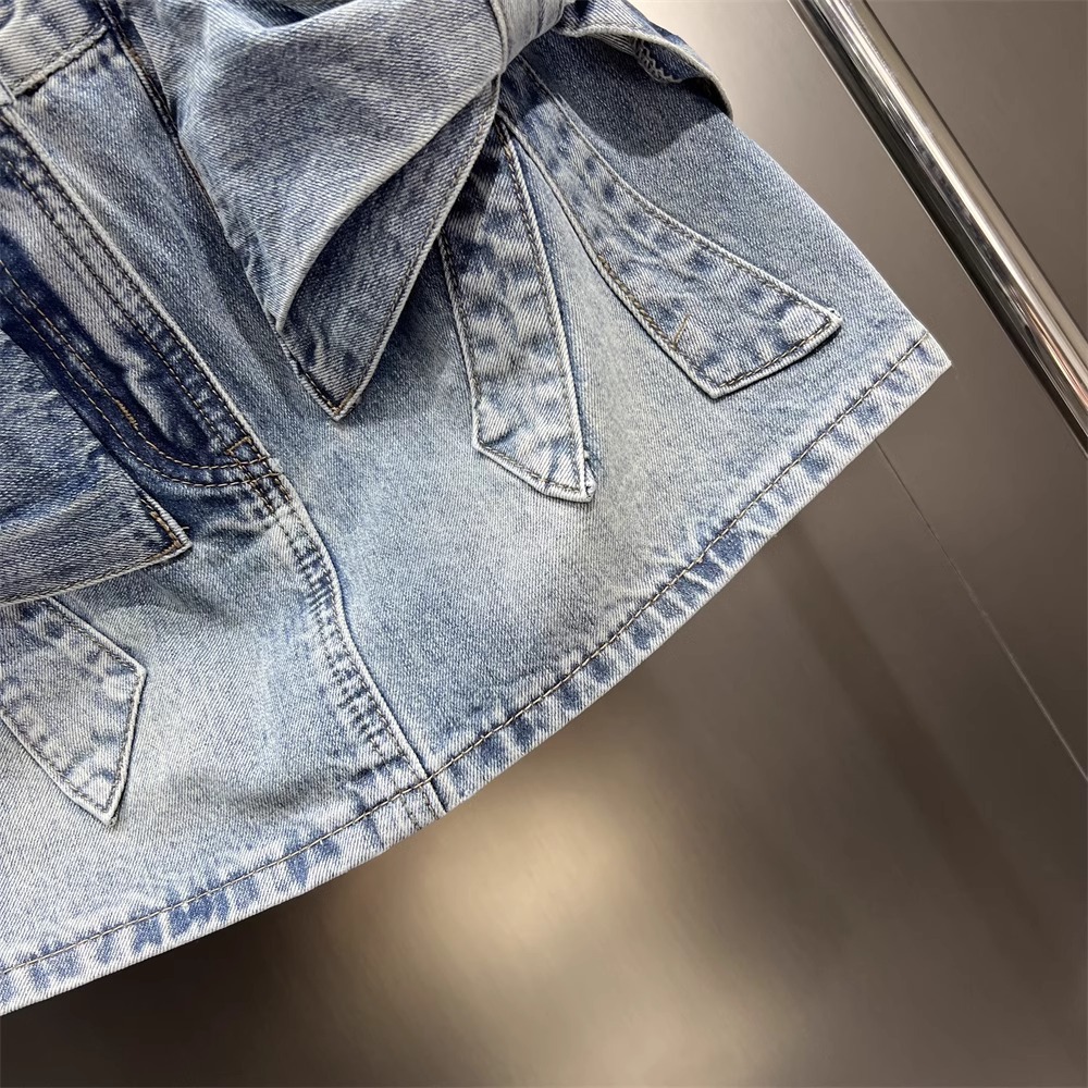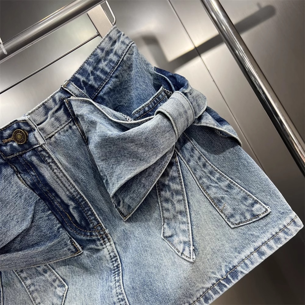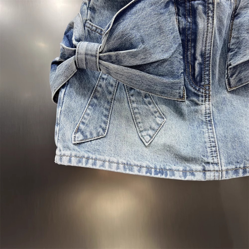 立体蝶結びのデニムのスカートの女性の新型の夏服のギャルの風の小さい大衆のデザイン感はお尻のA字型のスカートを包みます。