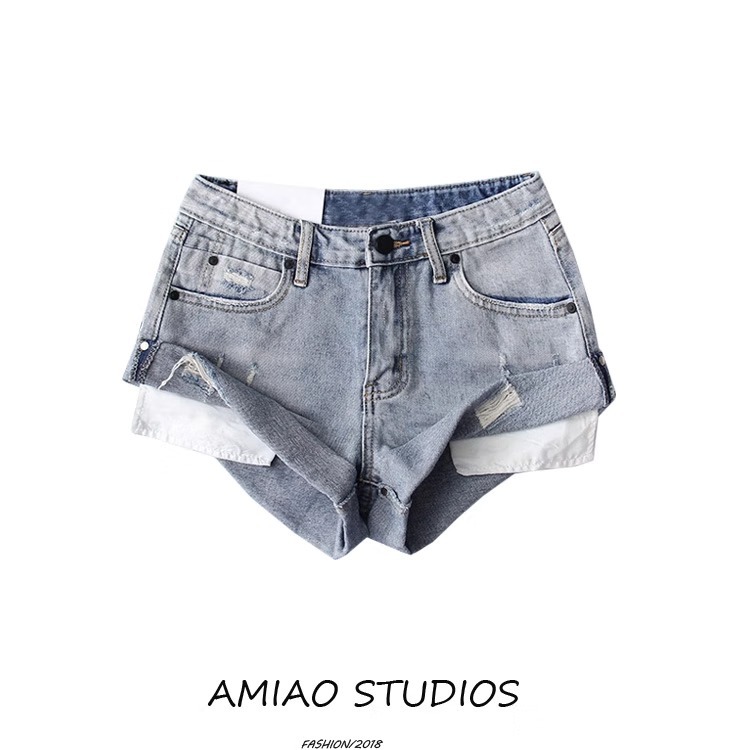 欧米の白いデニムの半ズボンの女性2025新型の夏服のギャルの破れた穴のズボンのカジュアルなファッションの広い足のA字のホットパンツ