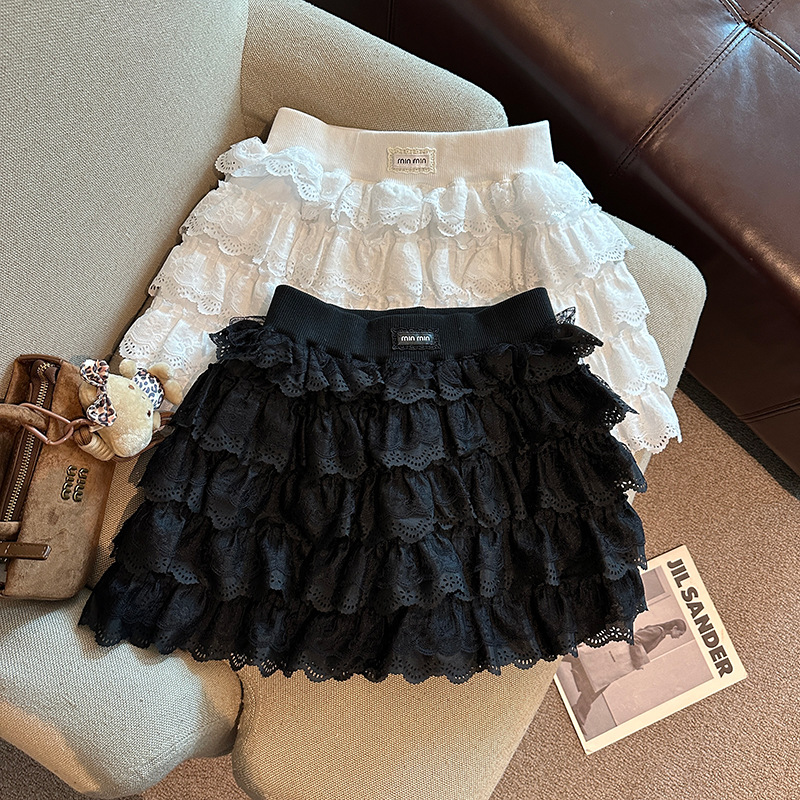 春の夏の小柄な甘さの層のケーキのスカートは腰のA字の蓬蓬の短いスカートの女性を緩めてA字の半身のスカートの女性を合わせます。