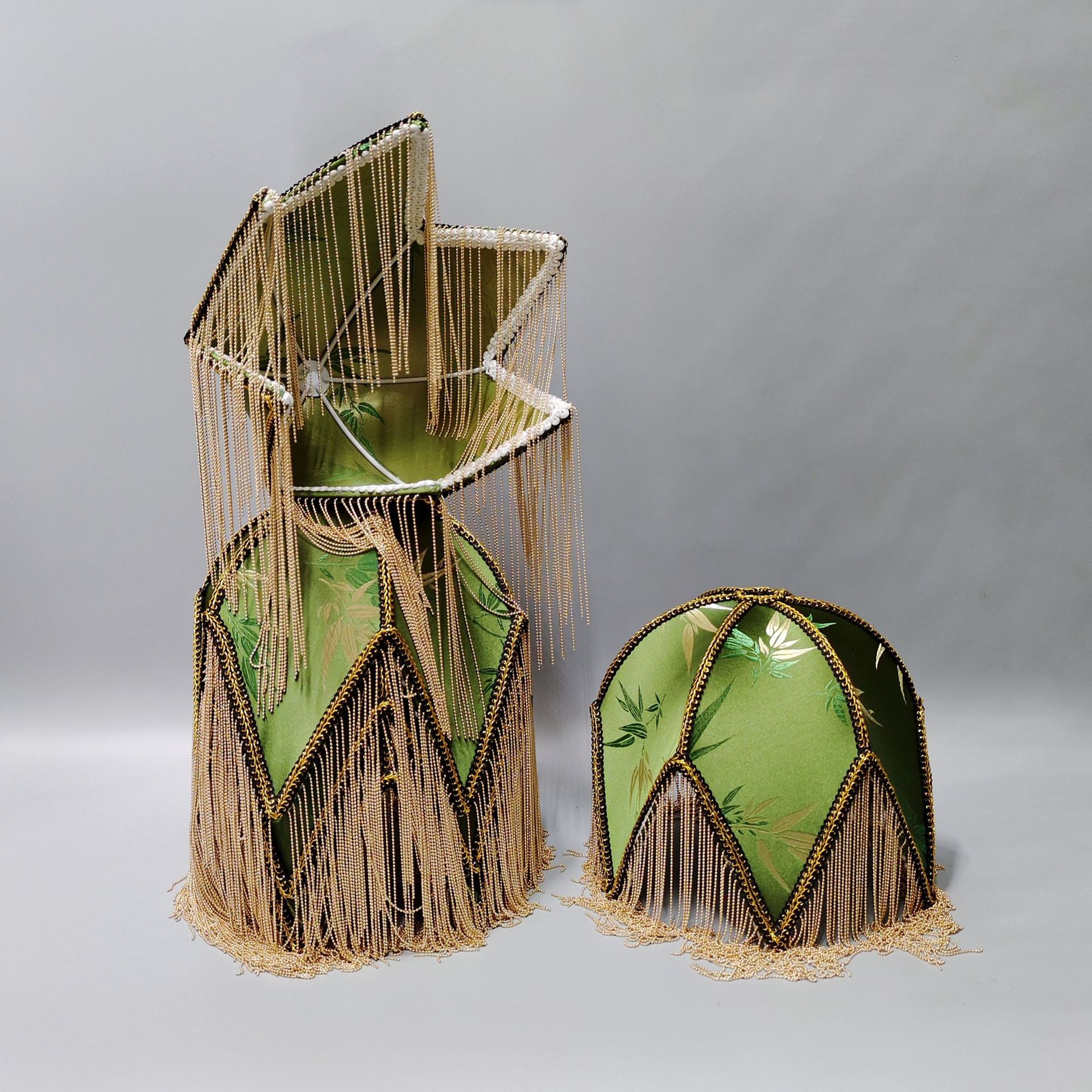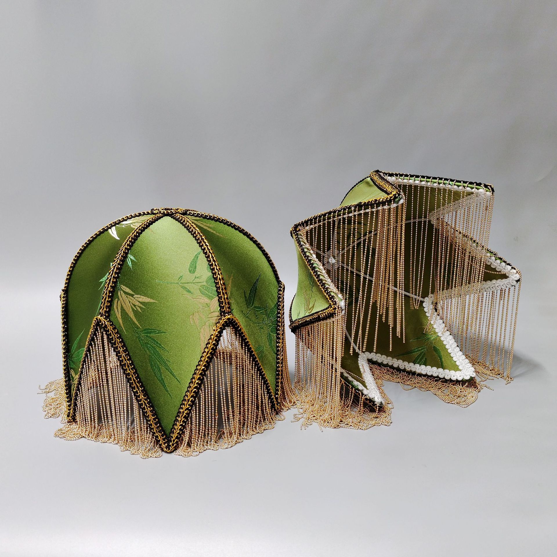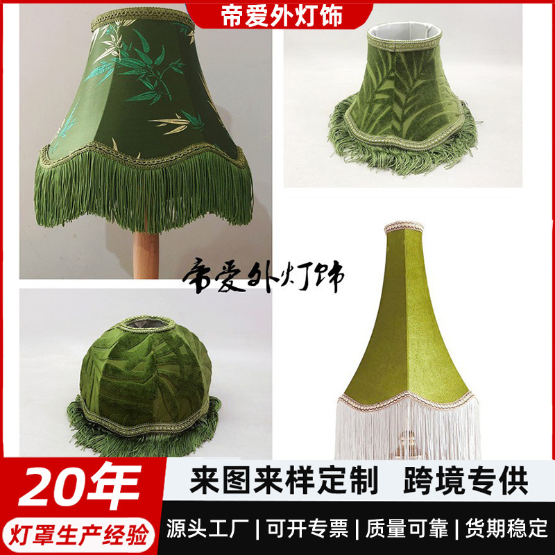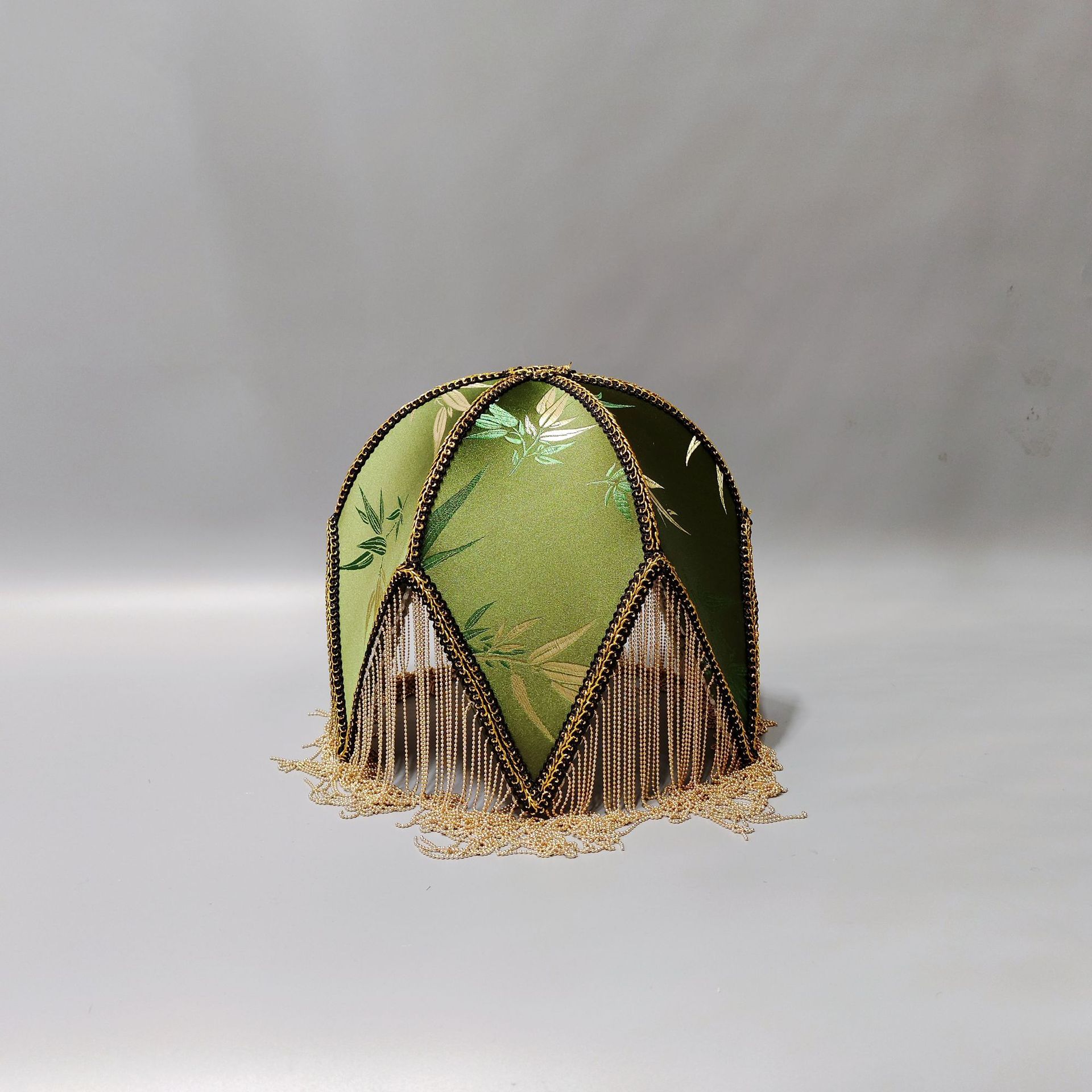 复古尖角流苏灯罩十厘孔布艺吊坠灯罩绿色黄色灯罩配件