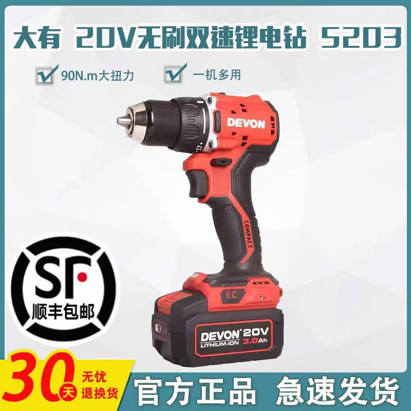 DEVON/大有ブラシレス充電ドリル5203リチウム電気ドリル衝撃ドリル5205電動ドライバーツール