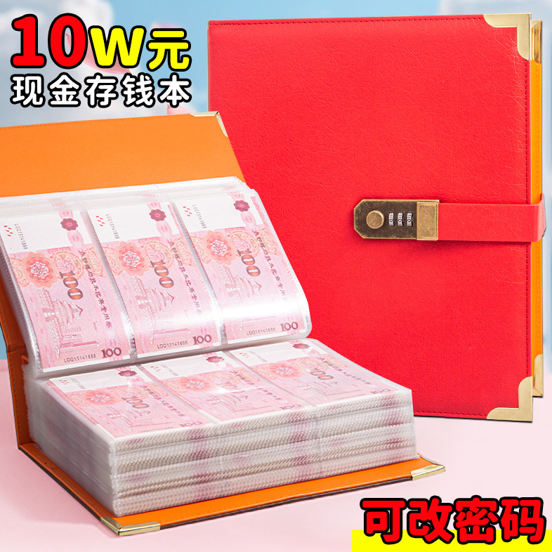 新款10万款密码锁存钱本现金收纳册压岁钱纸币外币攒钱本理财记账