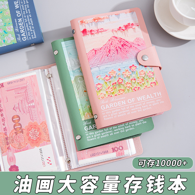 跨境新款油画软皮存钱本现金收纳册存钱夹纸币攒钱本理财本记账本