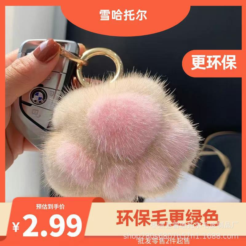ミンクの毛のかわいいぬいぐるみの爪の車のキーホルダーのペンダントの多色の子猫の爪のペンダント
