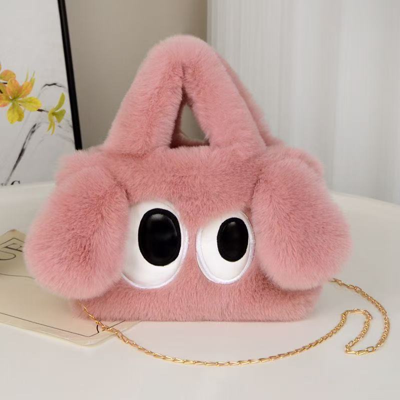 ふわふわの大きな目の子犬柄レディースバッグ 2024秋冬新作 モコモコ素材 バケット型 ショルダーバッグ 斜めがけバッグ おしゃれで多用途