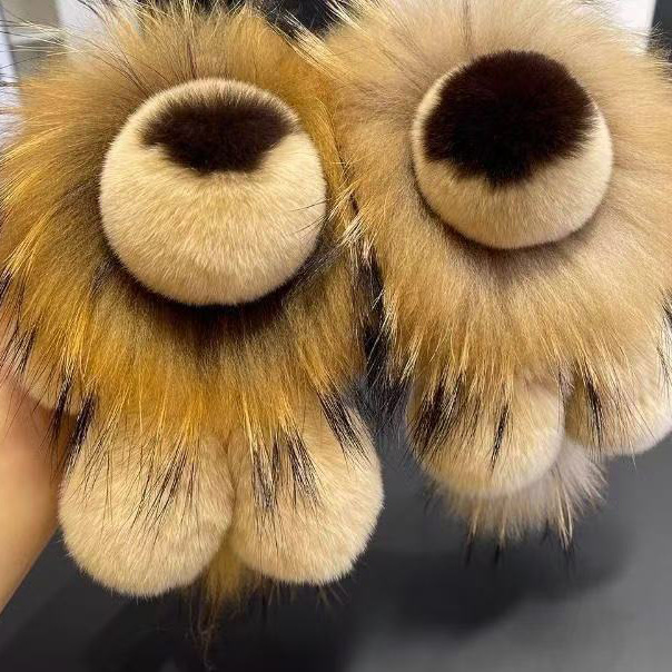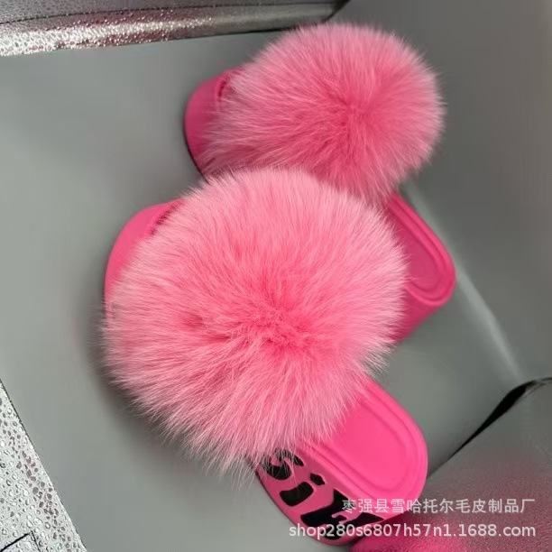 春夏の新スタイルの女性のヨーロッパとアメリカのファッションリアルフォックスファーアイスクリームボトムスリッパホームファーファースリッパ