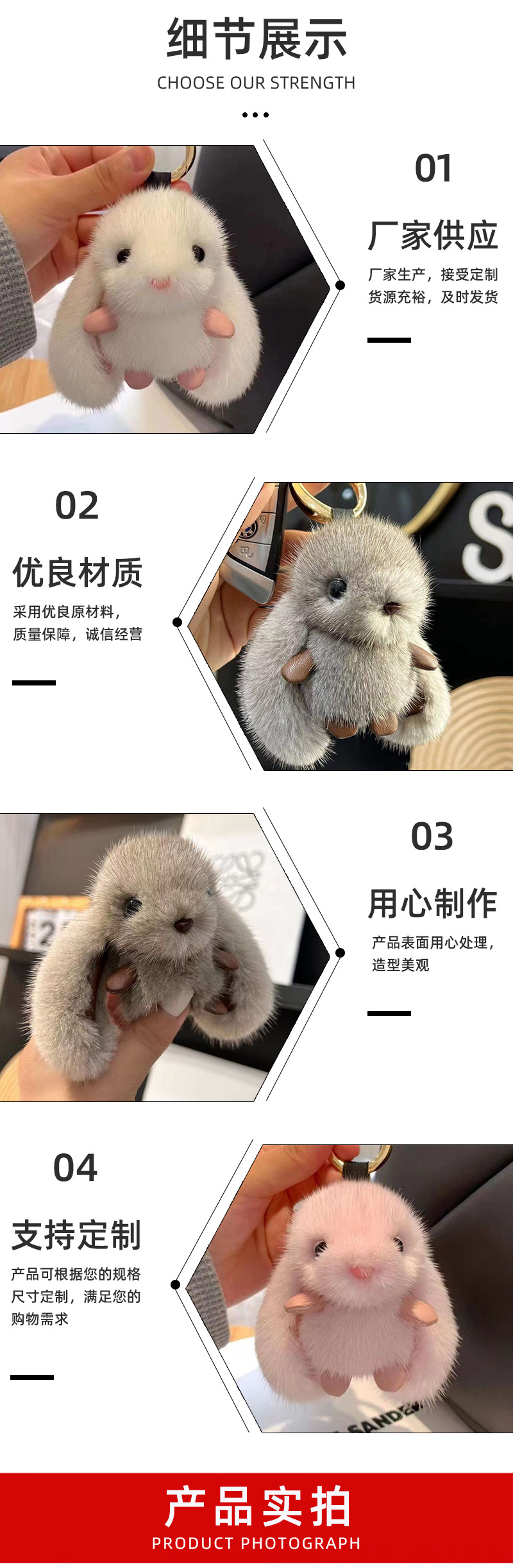 ミンクの毛のペンダントのような高颜値ミニ版ウサギのバッグのペンダントは毛が落ちないinsかわいい車のキーホルダーです