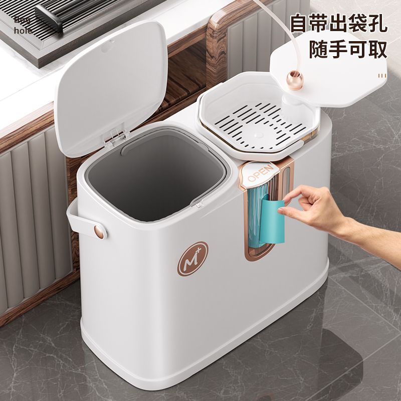 家庭用キッチンゴミ箱高颜値創意大容量三層押圧蓋付き乾湿分類厨房余ゴミ箱