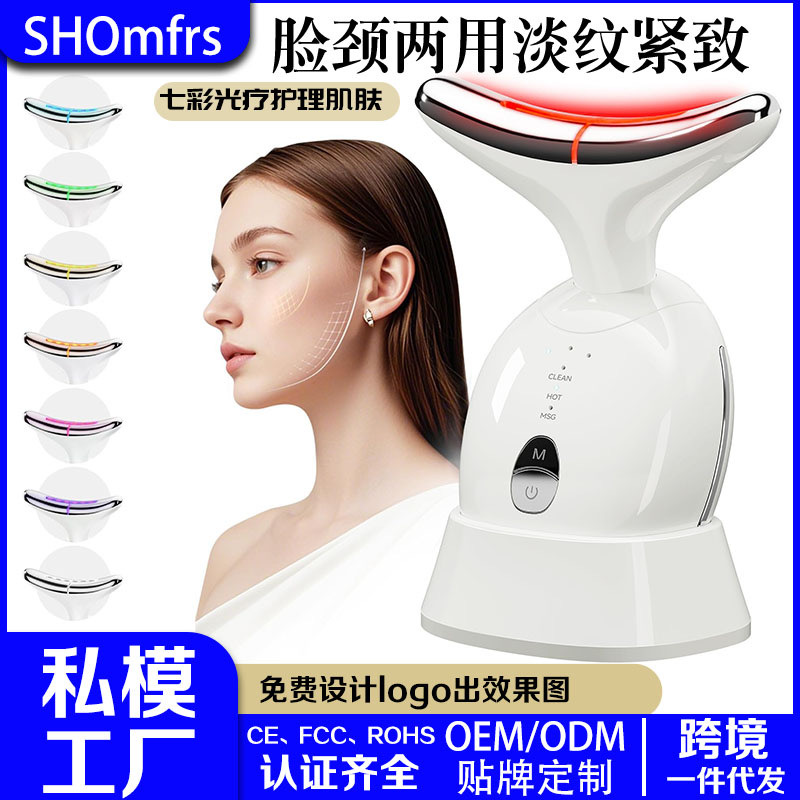 跨境美颈仪按摩颈纹仪7色导入仪震动美容仪V脸仪专用小海豚美颈仪