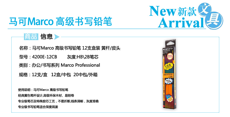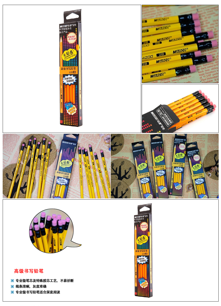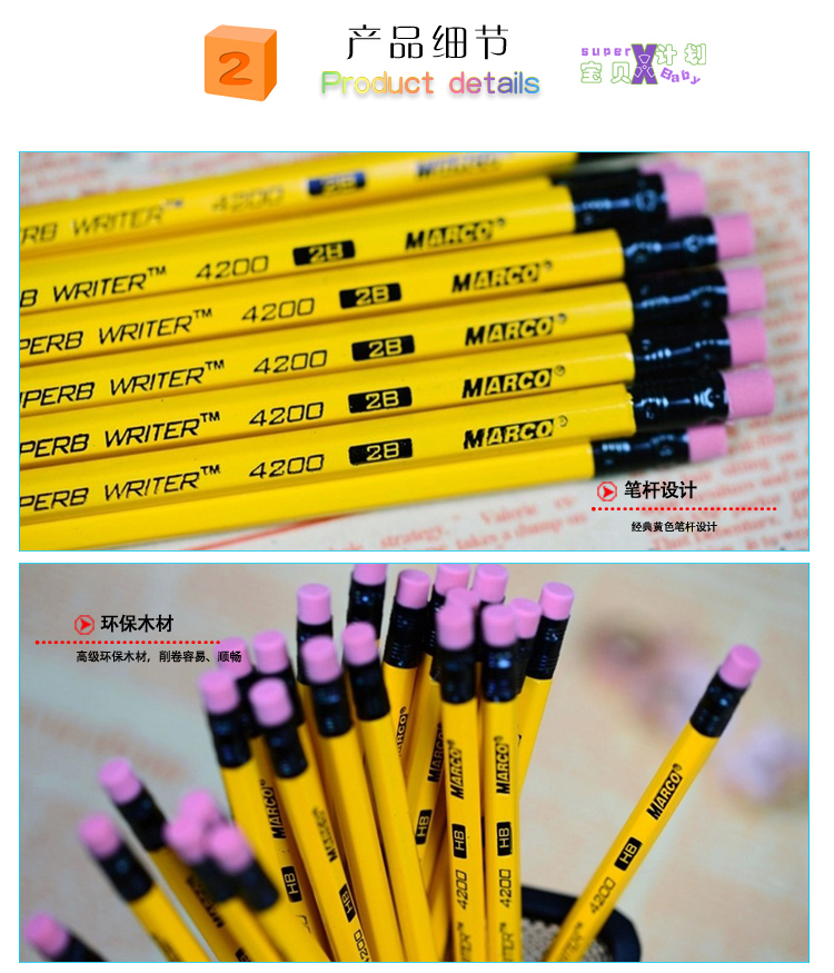 マルコ4200e-12cb学生ゴム付き黄色棒鉛筆hb 2b鉛フリー毒六角鉛筆12本