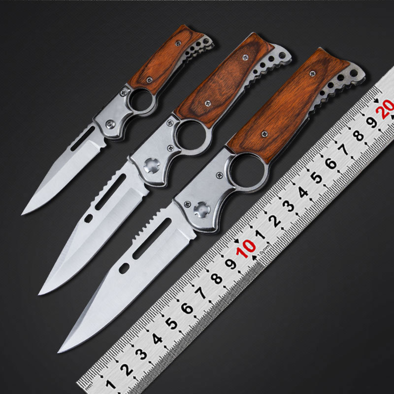 屋外ポータブル折りたたみナイフステンレス鋼フィールドキャンプサバイバルナイフ高硬度タクティカルナイフ木製ハンドル