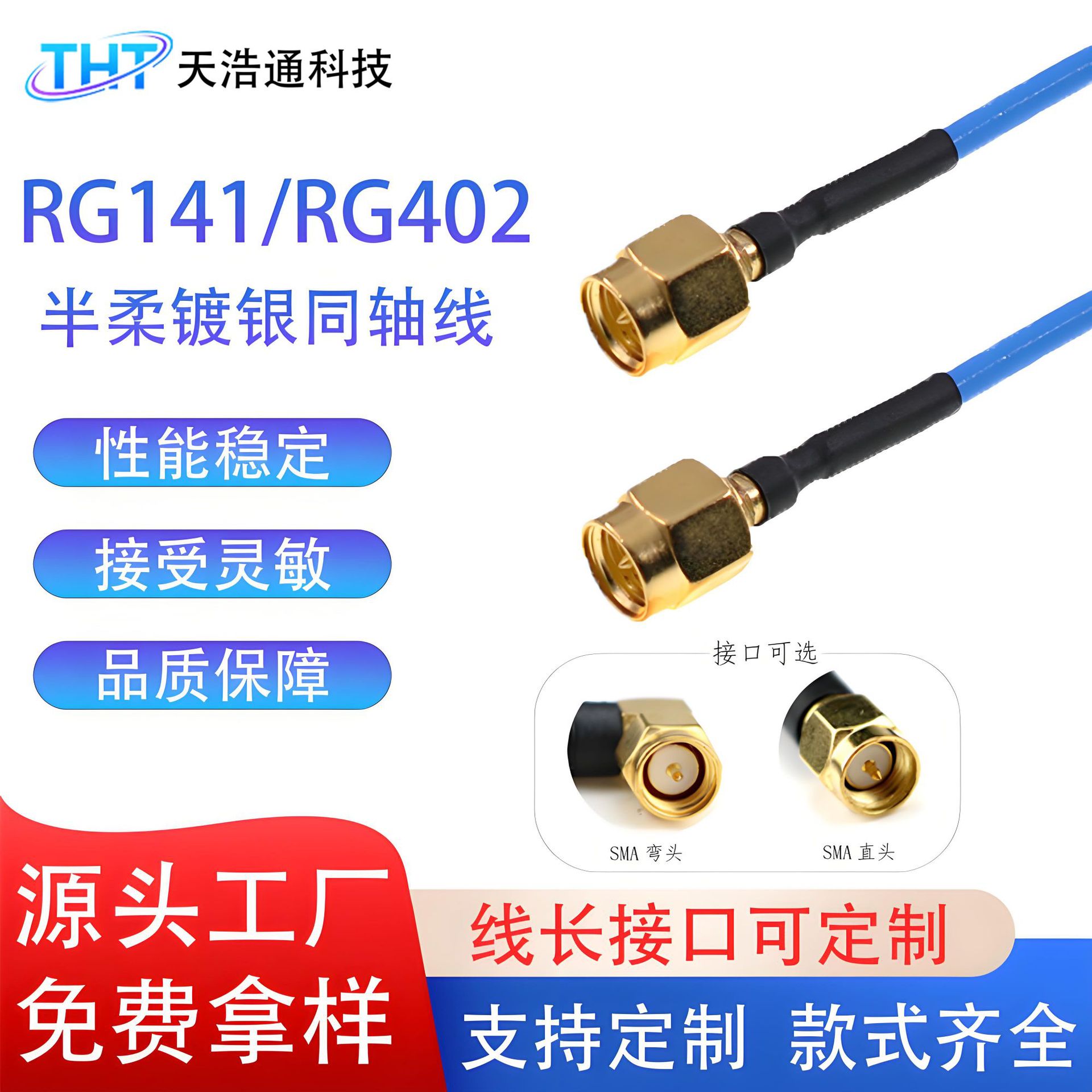 SMA公転公RG141青い半柔線RG402公転母高周波低損半柔メッキ銀同軸線
