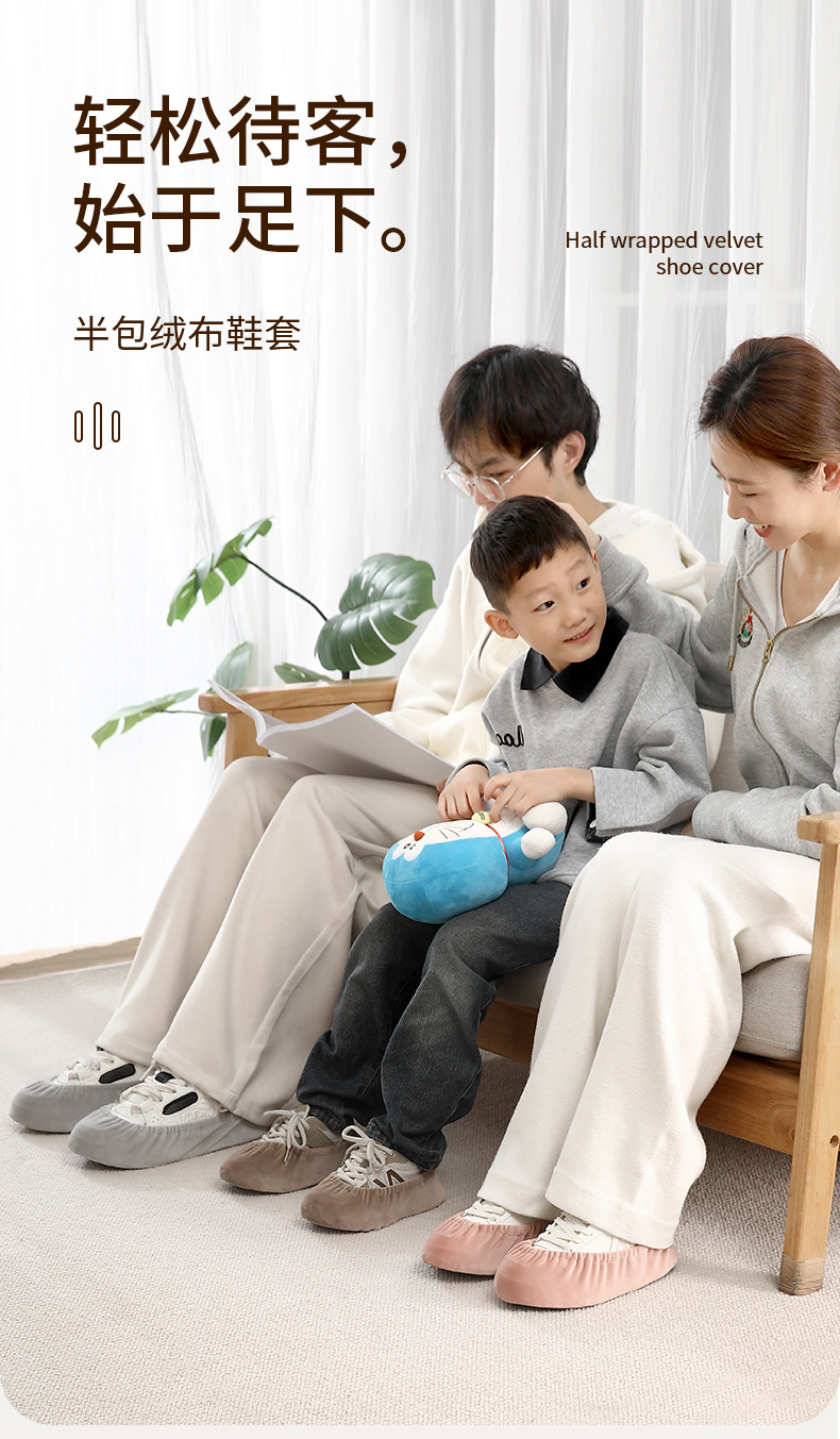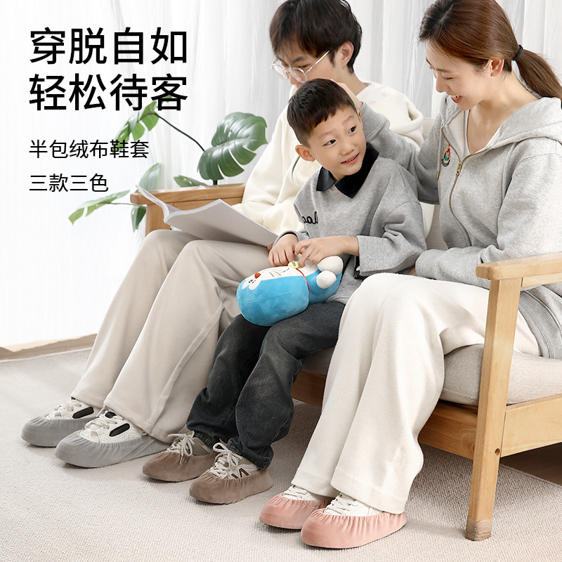 绒布鞋套家用室内布料可洗反复使用加厚防滑耐磨脚套学生机房儿童