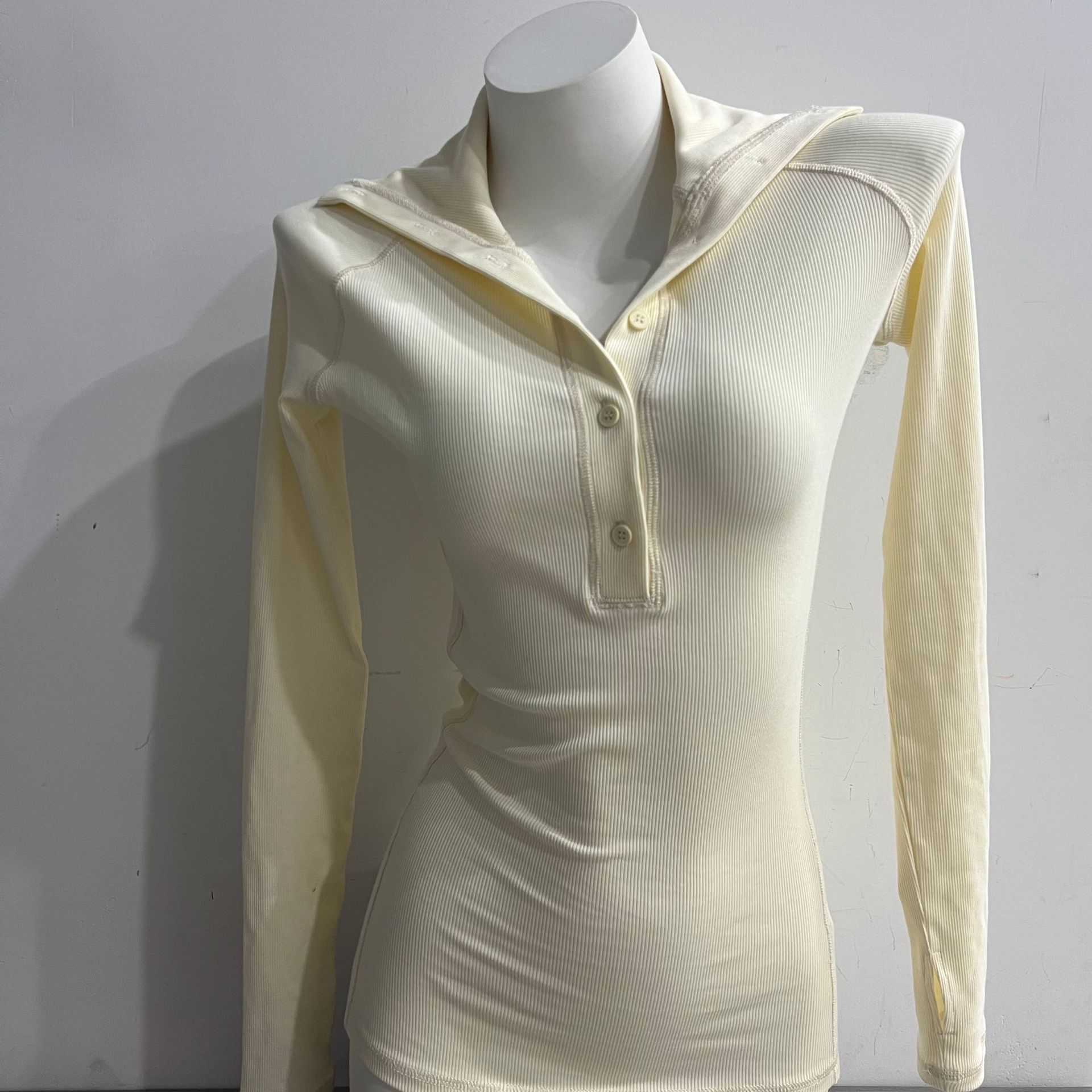 美式连帽亨利领正肩长袖t恤女早秋季修身打底衫收腰辣妹白色上衣