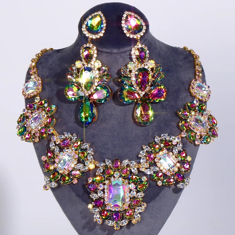 クロスボーダーの人気誇張アクセサリーセットのダイヤモンドのネックレスが爆発します。