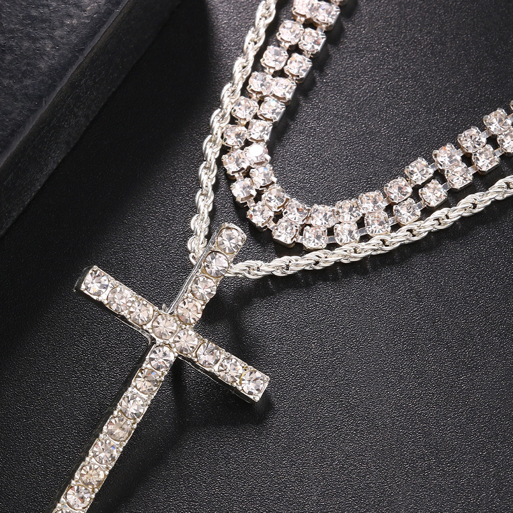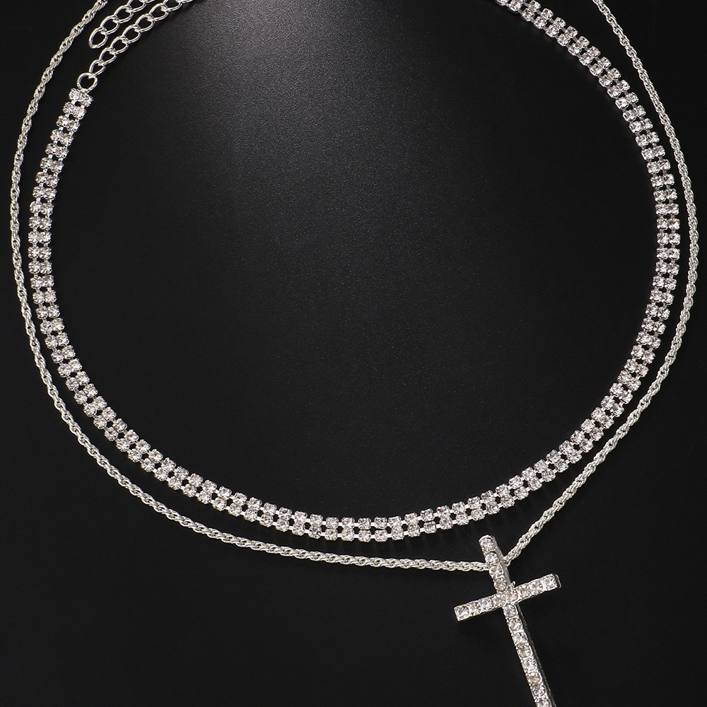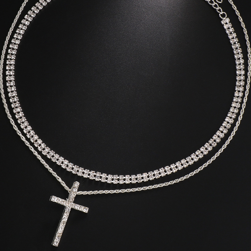 クロスボーダークロスクロスペンダントネックレスレディース高级感二重畳み込み锁日常通勤necklace