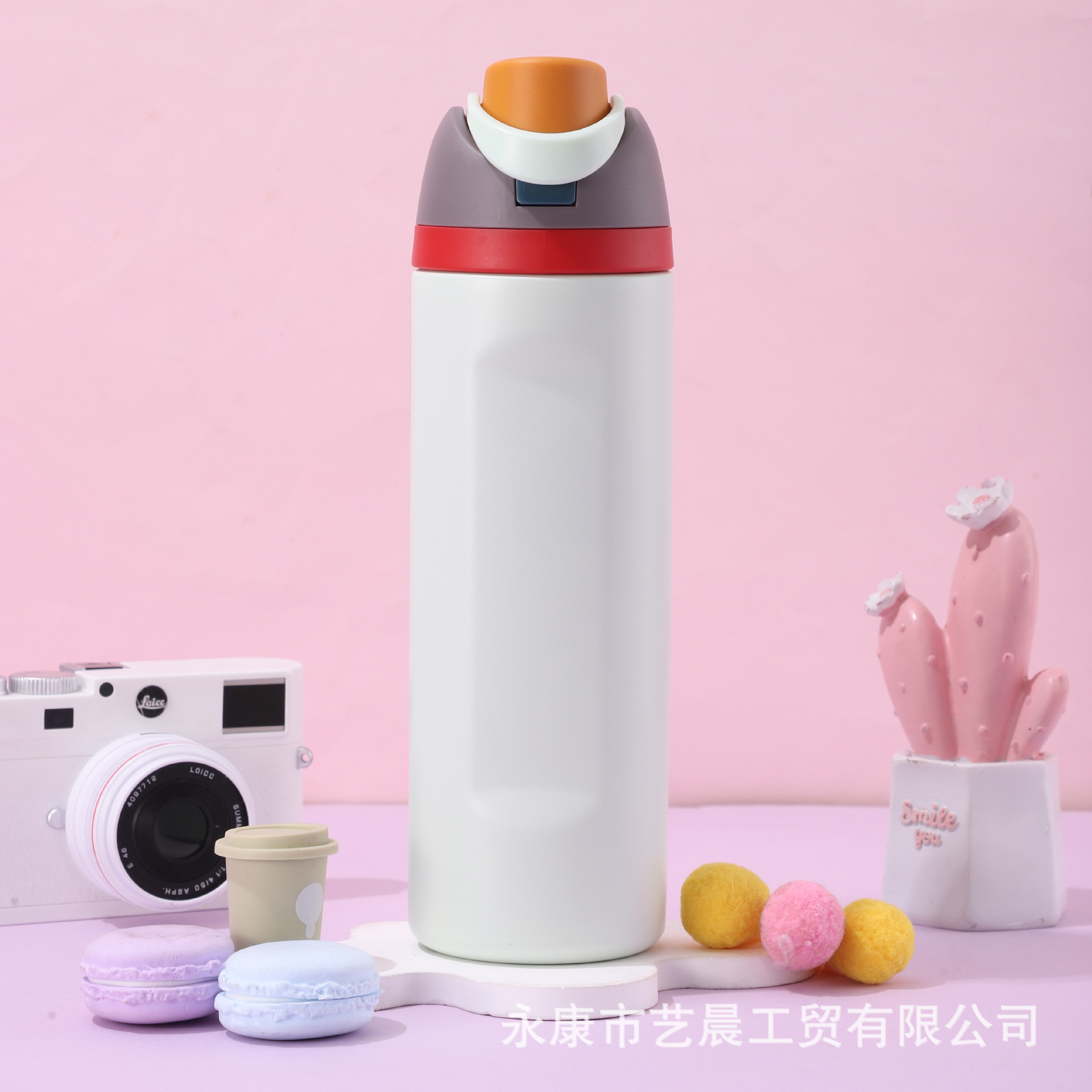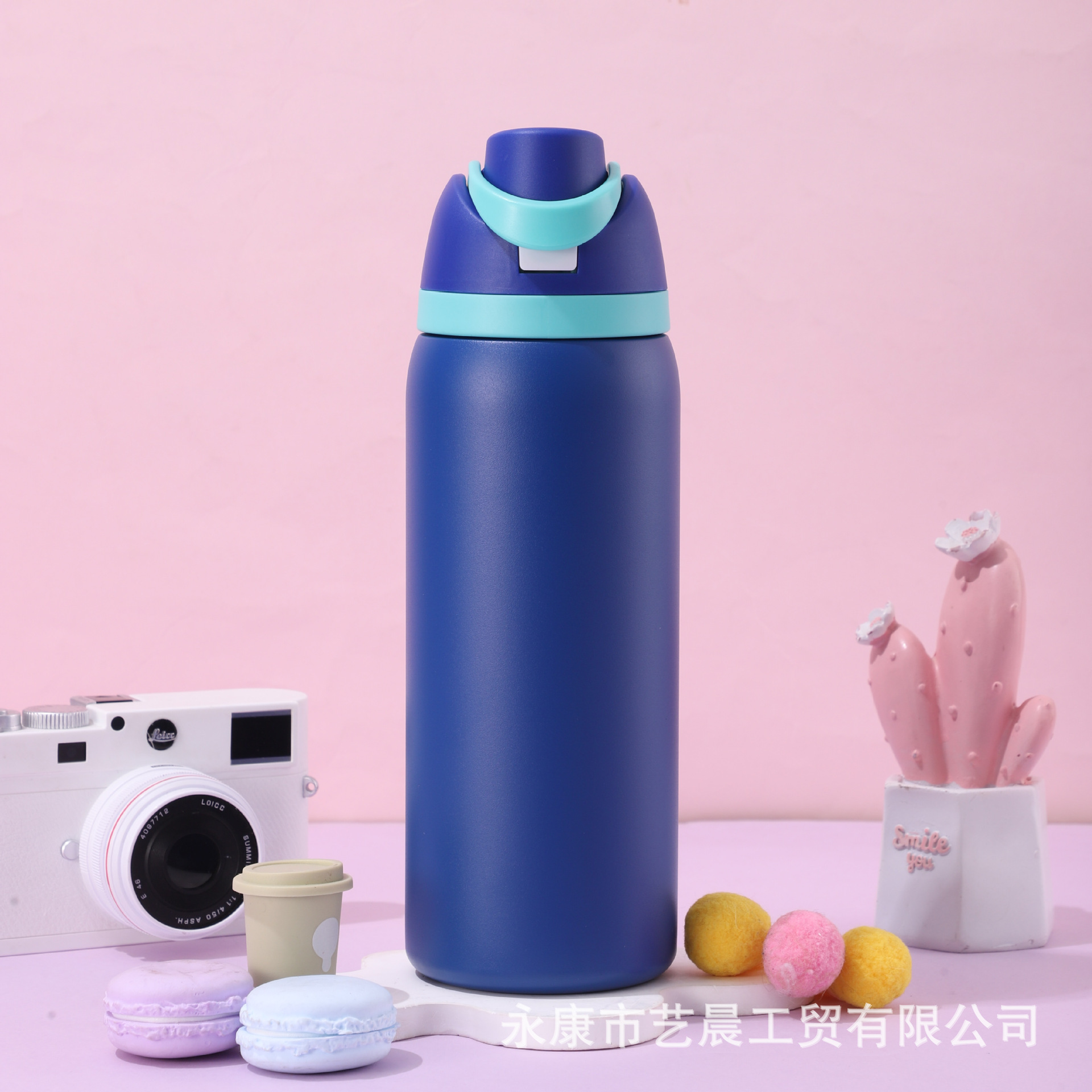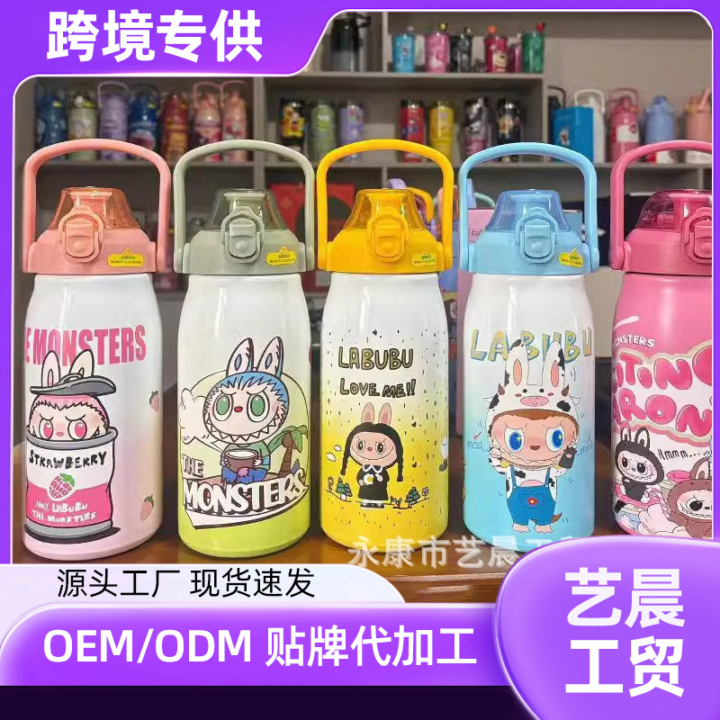 新型クロスボーダー大容量保温カップ高颜値漫画ストローカップハンドル付き304ステンレス保温カップ