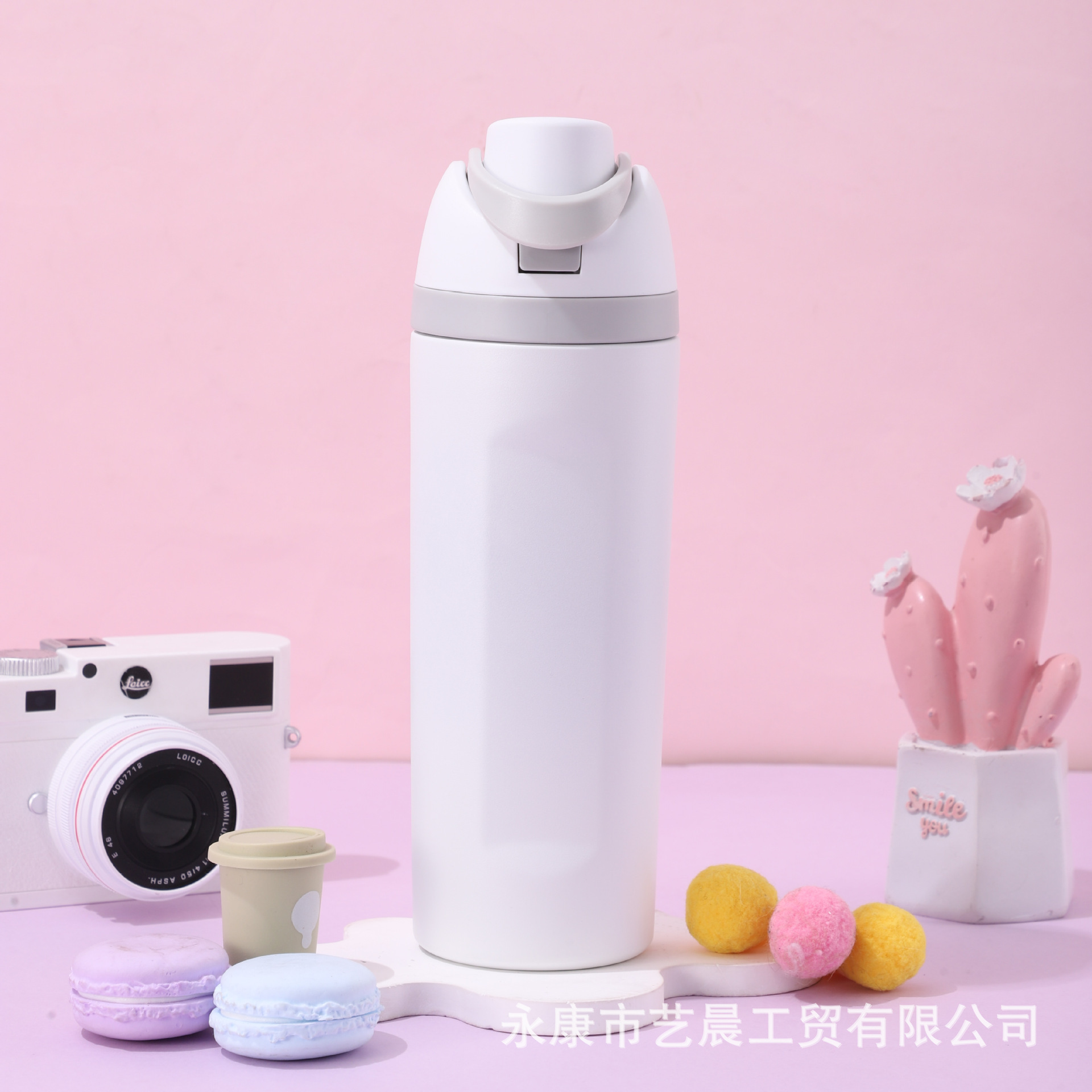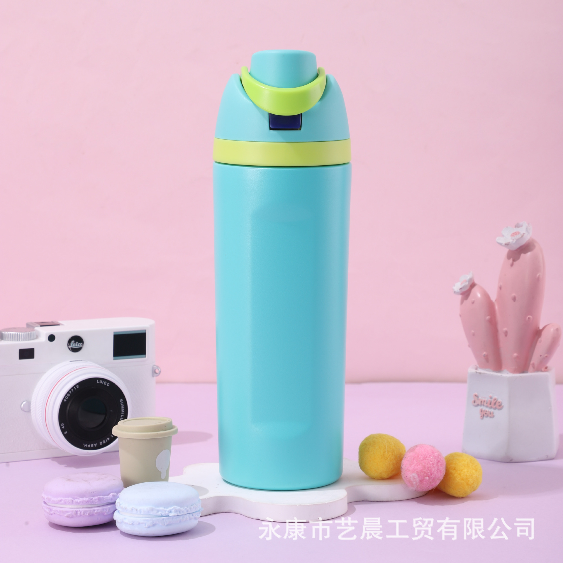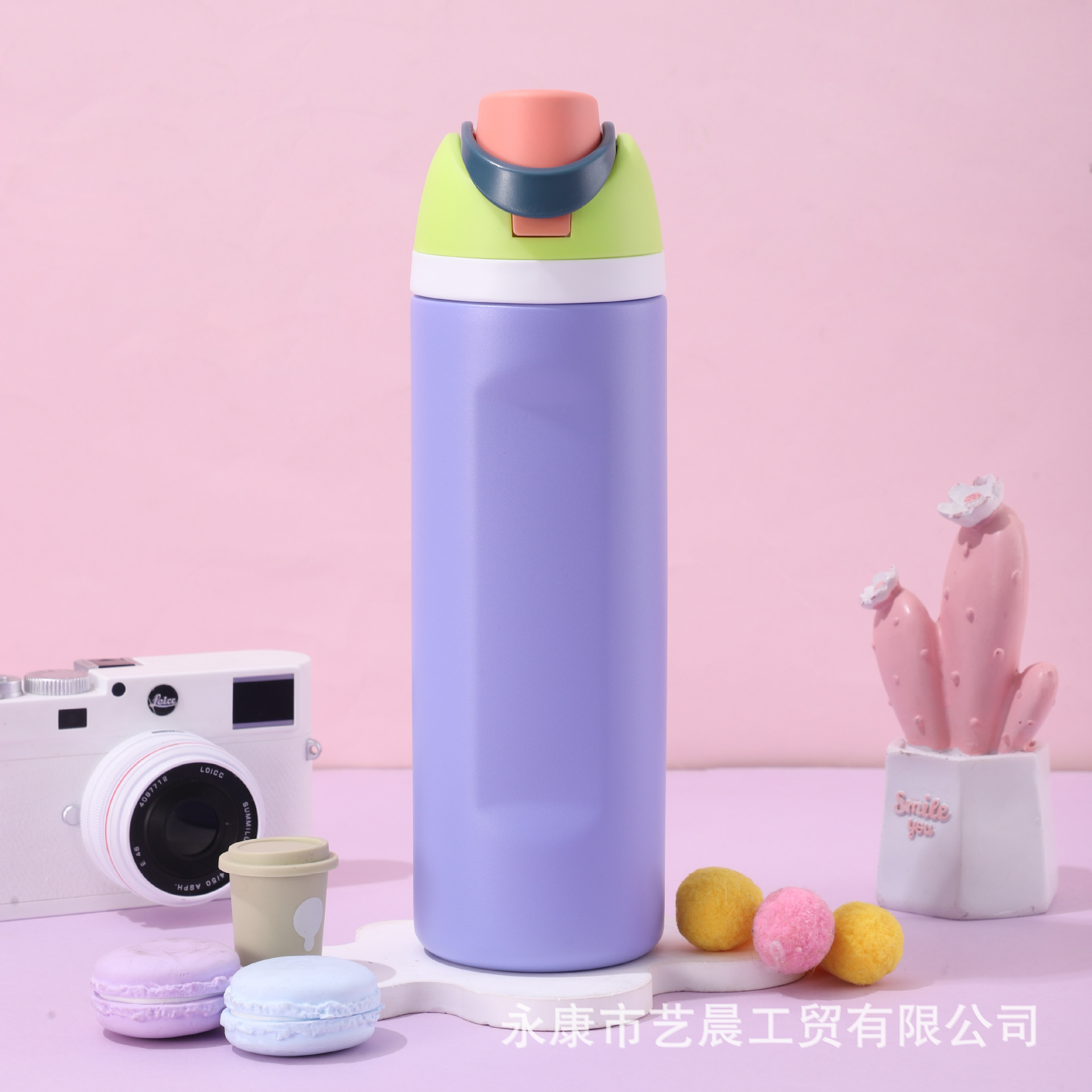 新型クロスボーダー大容量保温カップ高颜値漫画ストローカップハンドル付き304ステンレス保温カップ